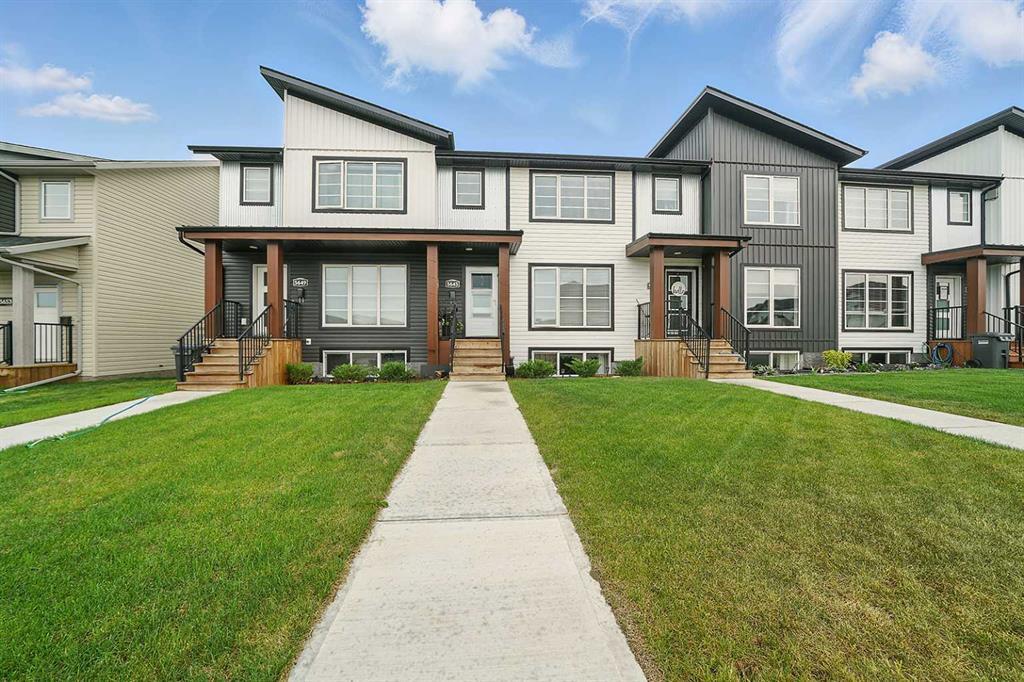 ~ Be WOWED~ by this PRISTINE 2023 townhome with NO CONDO FEE'S! Affordable living for the first time home buyer in a sought-after neighborhood in beautiful BLACKFALDS. Open the front door and be greeted by a beautiful CONTEMPORARY OPEN CONCEPT where lots of natural sun light flows throughout. Main floor boasts beautiful LUXURY VINYL PLANK flooring, a spacious front living room, kitchen and dining, a two- piece powder room and laundry. The stunning kitchen features a large eat up island, WHITE CABINTRY and stainless appliances. Off the dining to your spacious private deck, you can enjoy the NEW permanent COVERED PATIO, a FULLY FENCED YARD, storage under the deck, and 1 garden shed for your added storage. Upstairs your family can grow with 3 large bedrooms, and a four-piece bathroom. The primary bedroom features a ceiling fan, tons of closet space and a beautiful 3-piece ensuite. Quality carpet on the upper floor provides coziness and warmth. The unfinished basement is waiting for your great ideas, future floorplans are available thru FALCON HOMES. Take comfort in knowing you have the remainder of 10 year NEW HOME WARRANTY. This is not just a HOME, it’s a statement! This could be yours just in time for summertime.