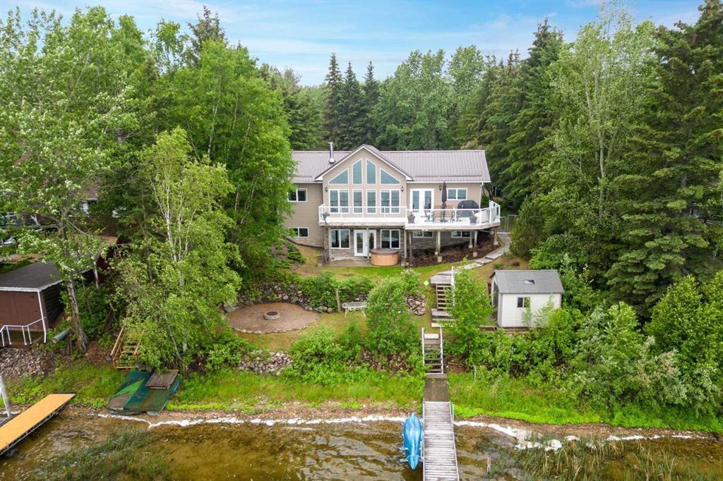 LAKEFRONT GEM ON SKELETON LAKE – 96 Blueberry Lane, Mewatha Beach Dreaming of that perfect lakefront escape? This 6-bedroom, 3-bathroom, walk-out bungalow has it all! Bright and open with vaulted ceilings, it’s built for family comfort and year-round relaxation. The spacious kitchen with island flows into a dining area that opens onto the upper deck—glass railings and composite decking, metal roofs mean low maintenance, high enjoyment. Inside, the gas fireplace, beautiful 5” engineered hardwood, and main floor laundry make everyday living a breeze. Head downstairs to the walk-out basement featuring cozy cork flooring, a large family room, 3 more bedrooms, and direct access to the covered deck with hot tub—hello, lakeside evenings! You’ll love the fenced, beautiful landscaped yard, perfect for kids and pets, with easy lake access just steps away. Need space for toys? You’ve got it with TWO double detached garages plus a shed. This one is made for Lake Life Living—move in and start making memories! R/O Water System. Cistern 1200 GAL. Septic Tank 2000 GAL.