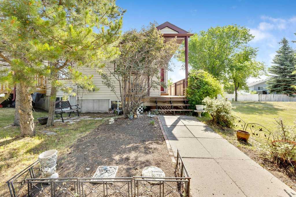Welcome home to this Bungalow, bareland condo, with low fees((50.00 month). This end unit overlooks the park and playground in Green Meadows. This unit would be perfect if you are just starting out or looking to downsize. The primary Bedroom has a full ensuite with ceramic tile and his and her closets. Hardwood floors in the Living room and Den with high ceilings, the two piece bath/main floor laundry is handy off the kitchen. Kitchen has a breakfast bar as well as an eating area. The lower level has upgraded flooring (Dubai series composite flooring)only a couple years old, just needs a few finishing touches (paint and baseboards) to be complete. The family room is complete with a gas fireplace for those cozy winter nights., a 4 piece bath in the lower level, flex area(games room/playroom) and 2nd bedroom (window does not meet current legal egress requirements). Shingles were replaced 3 years ago, no hail damage.