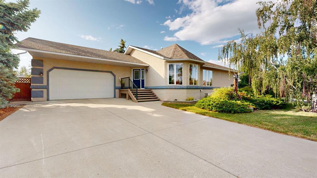 This well-maintained 1,647 sq ft bungalow is move-in ready and features numerous thoughtful upgrades throughout. On the main level, the primary bedroom offers a walk-in closet, large ensuite, and French doors opening onto the back deck, while the bright living room provides generous space and natural light. The large, functional kitchen and dining area is both practical and stylish, with additional French doors leading to a private, two-tiered east-facing deck. A second main floor bedroom currently serves as an office, and the laundry room off the garage entry doubles as a convenient mudroom. The fully finished basement with in-floor heating includes two spacious bedrooms, a family room with a 3-sided fireplace, an additional living area, and a flex room that could serve as a fifth bedroom (no closet). Additional highlights include central A/C, a beautifully landscaped yard, a double attached garage with in-floor heat, and a rear RV parking pad with 50-amp plug. Ideally located in a quiet cul-de-sac near the schools and walking paths, this home offers comfort, space, and everyday convenience.