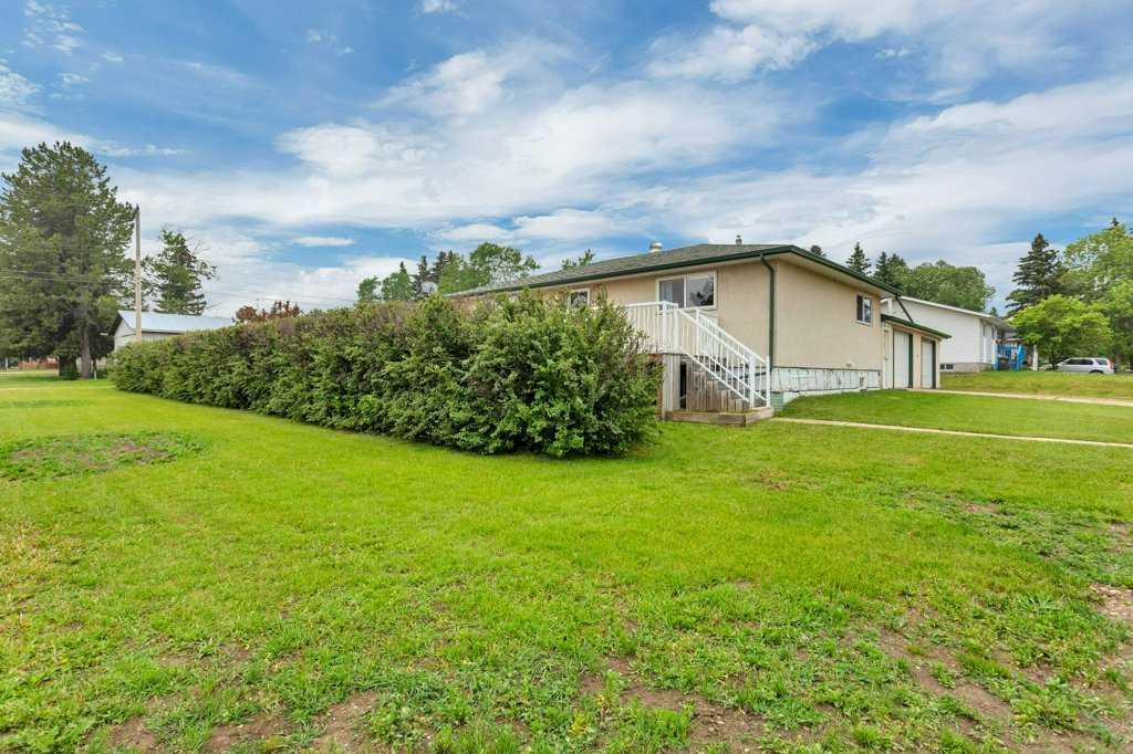 Welcome to this inviting 4-bedroom bungalow nestled on a generous corner lot in the friendly town of Rimbey. This home offers the perfect blend of comfort, space, and convenience — ideal for families, retirees, or anyone looking to enjoy small-town living with big-time amenities. Step inside and you’ll find a spacious living room, kitchen, 4 pc bath, and two bedrooms on the main floor. The lower level offers 2 versatile bedrooms, great for guests, a teen retreat or utilize one as a private home office. An additional spacious area offers endless possibilities, whether as a kid's playroom, hobby space, or craft area. A 2 pc bathroom is already in place and prepped for a future shower installation. With just some finishing touches like trim and ceiling work, this level is nearly complete and full of potential. The main floor features a convenient stacked washer and dryer, though there’s the flexibility to move laundry back downstairs if you’d prefer to repurpose the space (currently used at the end of the hallway closet). An advanced air recovery and filter system was also installed, including a scrubber to filter smoke from forest fires, great for those with allergies or who like clean fresh air inside. The heart of the home is the bright and open kitchen, complete with a large island and patio doors that flood the space with natural southern light. Step out onto the expansive wraparound deck and enjoy views of the oversized yard — nearly 100 feet deep by 135 feet wide! There’s plenty of room for gardening, entertaining, and storage for your RV. Car lovers and hobbyists will appreciate the oversized double garage, fully heated and ready for year-round use. Rimbey is a welcoming community that offers everything you need close by — a hospital, shopping, grocery stores, and entertainment options. Outdoor enthusiasts will love the nearby golf courses, hiking trails, and the abundance of lakes perfect for kayaking, fishing, swimming, or winter adventures. If you’re looking for space, comfort, and small-town charm with access to nature and amenities — this bungalow is worth a closer look!