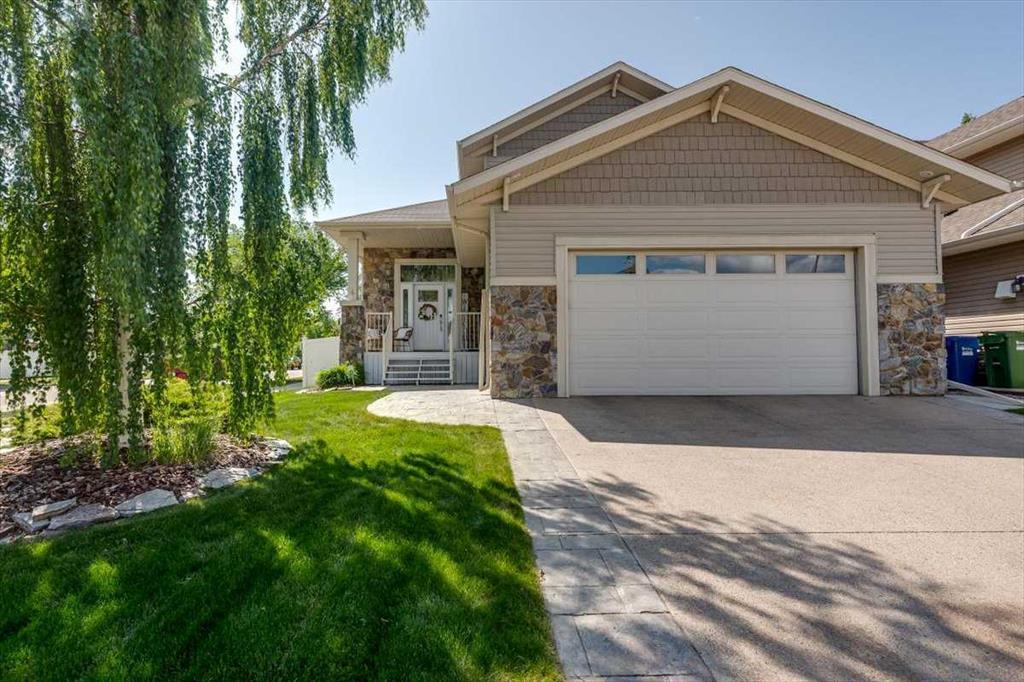Welcome to this stunning, fully finished 1.5 storey home located in the desirable community of Southbrook. This former Abbey Platinum Master Built showhome showcases exceptional craftsmanship and high-end finishes throughout, both inside and out. Backing directly onto a green space and playground, this location is ideal for families. The professionally landscaped exterior is highlighted by upgraded siding with detailed stonework, a custom stamped/aggregate driveway, and low-maintenance vinyl fencing. A spacious front foyer invites you into the home and opens into the impressive great room, featuring rich cork flooring, a gas fireplace with stylish herringbone tile surround, and massive west-facing windows that fill the space with natural light. The gourmet kitchen is a chef’s dream—complete with extended custom cabinetry, a large center island with eating bar, upgraded stainless steel appliances, quartz countertops, and striking herringbone tile backsplash. The oversized dining area seamlessly connects to the kitchen, making it perfect for hosting family and friends. A functional main floor layout includes a private den/office, 2-piece powder room, and a convenient laundry/mudroom with built-in cabinetry and bench seating. Upstairs, you’ll find two generously sized bedrooms, a full 4-piece bath, and an expansive primary suite retreat featuring a luxurious 5-piece spa-style ensuite and dual walk-in closets. The fully developed basement is designed for entertaining with a large family room, games area, built-in wet bar, in-wall speaker system, a 4-piece bathroom, and an additional bedroom. This home is loaded with upgrades, including in-floor heating, dual high-efficiency hot water tanks, central air conditioning, central vacuum system, and a high-efficiency furnace. The heated dream garage is fully finished with premium flooring, custom cabinetry, and quartz countertops—perfect for the hobbyist or car enthusiast. Step into your west-facing backyard oasis, complete with built-in speakers, a gas BBQ hookup, low-maintenance Trex decking, ground-level flagstone patio, hot tub, mature trees for added privacy, and a large storage shed.