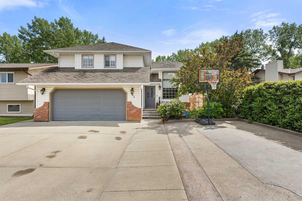 Welcome to this well cared for 4 bedroom + Den, 3 bathroom, large family home offering over 2,100 sq. ft. of thoughtfully designed living space in a desirable location in Olds. Ideally situated just minutes from shopping, schools, playgrounds, fire station, and walking paths —this home delivers both convenience and peace of mind. Step through the front door into a spacious, welcoming living room with high ceilings and lots of light. Then travel towards a beautiful kitchen/eating area with loads of cabinetry and cupboard space, corner pantry, large island with raised breakfast bar, all opening onto the back deck overlooking its mature, landscaped and fenced backyard. The property has a layout ideal for entertaining and everyday living. Just off the kitchen, the second level opens onto a family room with a large built-in wood fireplace, 2 piece washroom, and bedroom/office, all with in-floor heating on this level. Upstairs you will find the comfortable primary bedroom with 3 piece ensuite and walk-in closet, 2 more generously sized bedrooms, a closet laundry area, 4 piece bathroom, and up a few steps, a den/craft area which overlooks the main living room below. Downstairs, the partially developed basement with in-floor heating expands your living space with a flex area that could be used for workouts, and storage plus utility room. The utility room boasts a newer electric panel, newer tankless hot water system, and newer furnace within the last few years. Step outside to your semi-private backyard oasis, complete with mature trees, large 12' x 26' rear deck, concrete patio with fire pit, garden shed, all backing onto walking trails and green space. The house is roughed-in for a hot tub as well. Top it off with a large driveway and double attached garage, to make this the ultimate family home, with mature trees, in a great area of Olds close to schools, and all ready for a new owner. Don’t miss your opportunity to call this property your next home!