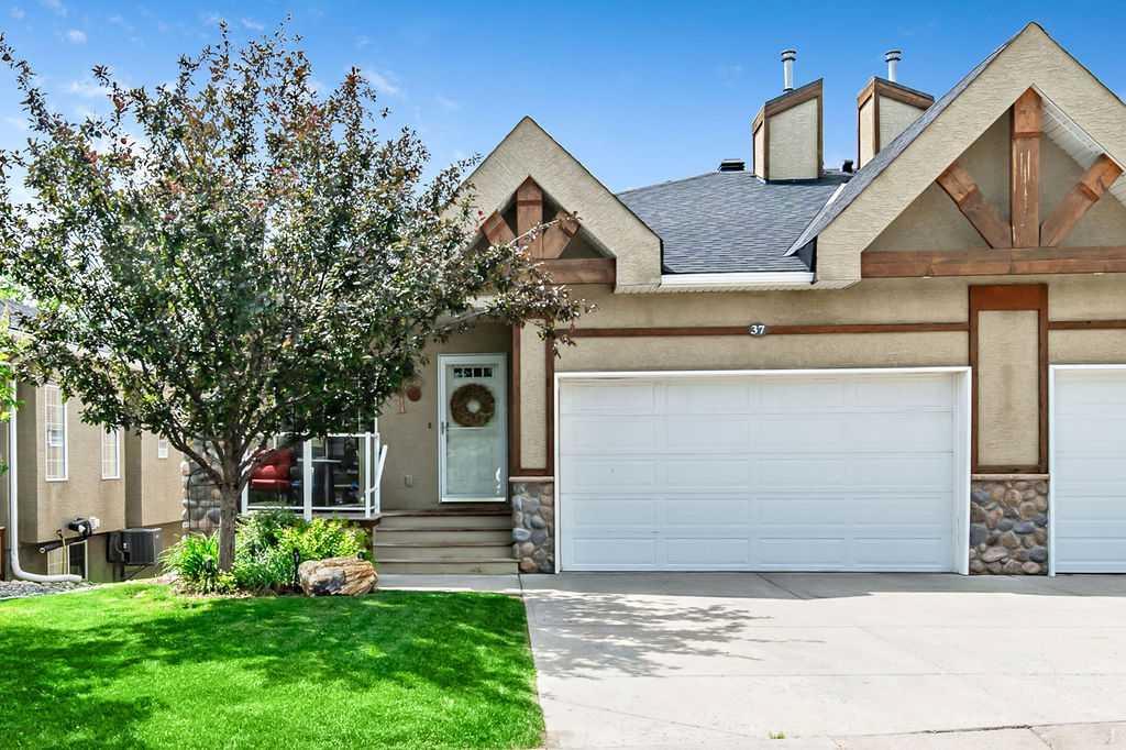 SUPERB VILLA with VAULTED CEILING, OPEN CONCEPT DESIGN, and WALK-OUT BASEMENT to boot! The advantages of villa-style living are numerous, from lawn care to snow removal, from stellar building exterior upkeep to stunning community living, and from awesome neighbours to great friends. The advantages of this specific unit are also numerous, as it is one of the larger models in the complex, is one of only select few walk-out units, and has had many updates over the years. STEP INSIDE (click 3D for virtual tour or come by Open House on Sat/Sun), and you’ll appreciate this home’s warm ambiance, open spaces and gorgeous natural light. MAIN FLOOR features large den at front (currently set up as formal dining room), kitchen with pantry and large island, and living room & dining nook with soaring vaulted ceiling. Primary bedroom with ensuite-bathroom w heated floors and walk-in closet, main floor laundry, and half bath complete this level. WALK-OUT BASEMENT features spacious rec room with fire place, two bedrooms, and full bathroom. DOUBLE ATTACHED GARAGE w 220V & hot-water hookup, and front driveway offer plenty of onsite parking for you & your guests. Did we mention birch hardwood floors, Murphy bed, and renovated ensuite bathroom? And the front porch, back deck and walk-out patio for year-round enjoyment of the outdoors? All this, in the STUNNING VILLA COMMUNITY of Dakotas of Air Ranch, offering ponds, bird sanctuary, paths, and gorgeous luxury homes all around. RECENT UPDATES INCLUDE - ensuite bath (2019), den (2019), fridge/stove/dishwasher (2020), hot water tank (2024).
