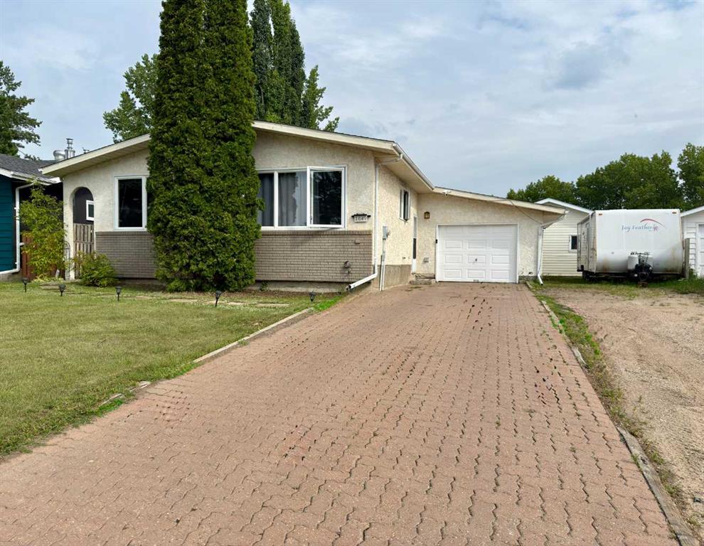 Tucked away on a quiet, family-friendly street and just a short walk to playgrounds and walking trails, this well-maintained 1,144 sq ft bungalow offers both comfort and convenience. The main level features a welcoming living room with a cozy wood stove, a bright dining area, and a kitchen with timeless white cabinetry. You’ll also find a 4 pc main bath, 3 bedrooms, including the primary bedroom with a 2 pc ensuite and direct access to a large back deck overlooking the beautifully treed, fully fenced back yard. The fully developed basement boasts a generous family room with a dry bar, a large bedroom with a huge walk-in closet, a beautiful newly renovated 3 pc bathroom, laundry area, and ample storage space. Enjoy the attached single car garage plus a spacious 24’ x 24’ double detached garage with handy back lane access. This property offers ample parking plus plenty of space for an RV! Recent updates include: new vinyl tile flooring on the main level in the kitchen, dining, bathrooms and side entry (2023), added insulation and vents in roof (2022) updated lighting in the basement (2024)new shingles on both the house and garages (2024) new sink, faucet and dishwasher in kitchen(2025) This wonderful family home won’t last long…. Book your showing today!