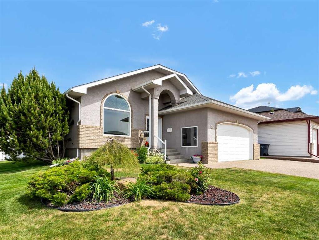 The primary bedroom is generously sized and features a walk-in closet and a spacious 4-piece ensuite with a separate jetted tub and shower. Two additional bedrooms on the main floor, along with another full bathroom, offer flexibility for family living or guest accommodations.
