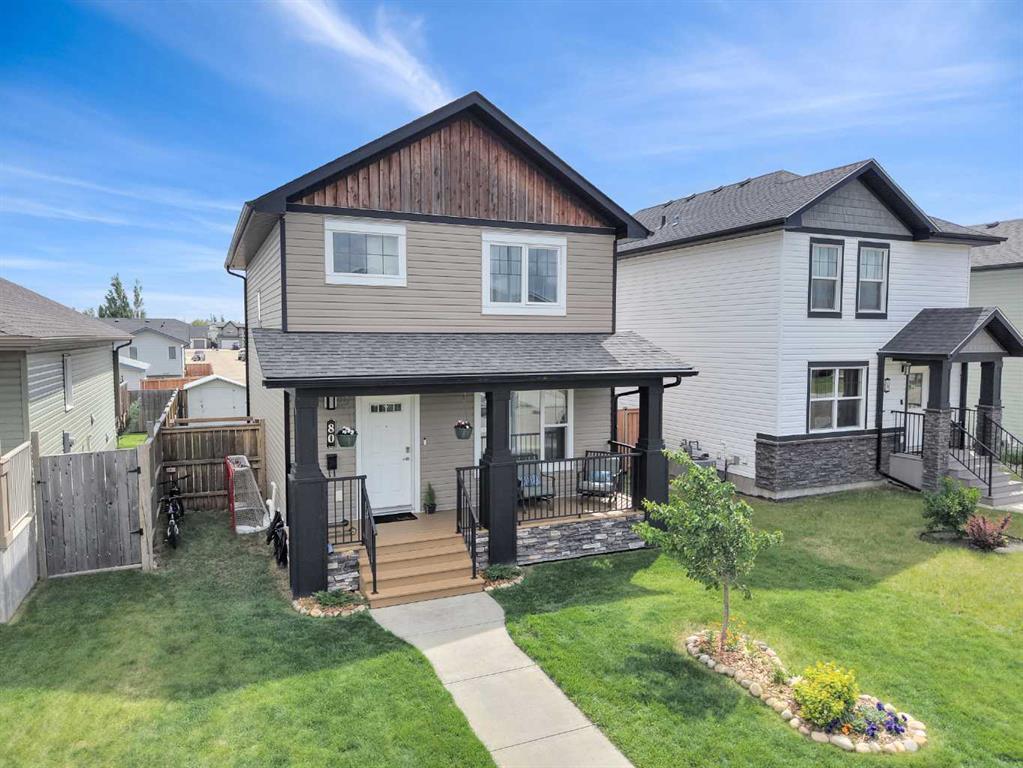 Talk about Curb Appeal in a TERRIFIC family neighborhood! This family friendly home has a wonderful front porch for you to enjoy while the kids play out front. Main level entry into an open floorplan with spacious living room, kitchen with island and dining room and a great half bath fill out the main level. Upstairs you will find 3 bedrooms, a full 4-piece bath, including a generous primary bedroom with walk in closet and Full 3 Piece ensuite. The basement has just recently been finished to include a custom bathroom with stunning walk-in tile shower, stacking washer/dryer unit, family room and a 4th Large bedroom. You will enjoy family, friends and entertaining in the fully fenced backyard with ample lawn and a fabulous deck – perfect for the kids and 4-legged family members. It also includes a large metal shed and ample rear-alley parking! There is enough room for you to build your future garage and increase your homes value. This home has been wonderfully maintained, is clean, crisp, easy to show and ready to move into! You're close to all of the amenities that Blackfalds has - paths, parks, ball diamonds and the Abbey Centre and the new schools too! Welcome to a wonderful community!