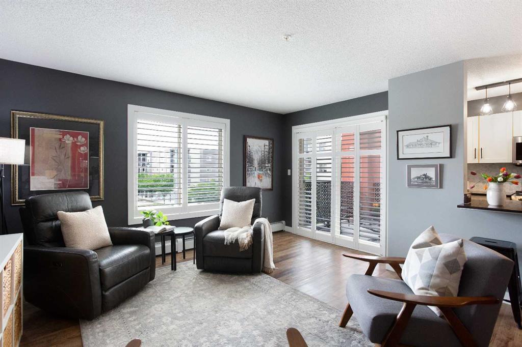 You NEED to check out this home before it's gone! This 952 sq ft 2 Bedroom CORNER UNIT home has it all - QUARTZ COUNTERS, LAMINATE FLOORING throughout, UPGRADED APPLIANCES, CUSTOM WINDOW SHUTTERS, Beautiful WALL CABINET in the Diningroom, and 2 TITLED UNDERGROUND PARKING STALLS!! From the moment you enter this home, you notice the bright OPEN FLOOR PLAN - what an entertainers' dream! The kitchen has upgraded STAINLESS STEEL Appliances, Quartz Countertops and a Water Filtration System under the Kitchen Sink!Both bedrooms are generous in size with the Ensuite tastefully upgraded with Quartz Counters and a Walk In Shower. The 4 piece Main Bathroom is conveniently located next to the second Bedroom and includes a Soaker tub/Shower as well as Quartz Counters on the Vanity. Head on out to the covered BALCONY to enjoy a morning coffee or an evening cocktail - this Balcony has plenty of room for your patio furniture and even a BBQ tucked around the side! Call your Realtor now and book your showing before it's too late!