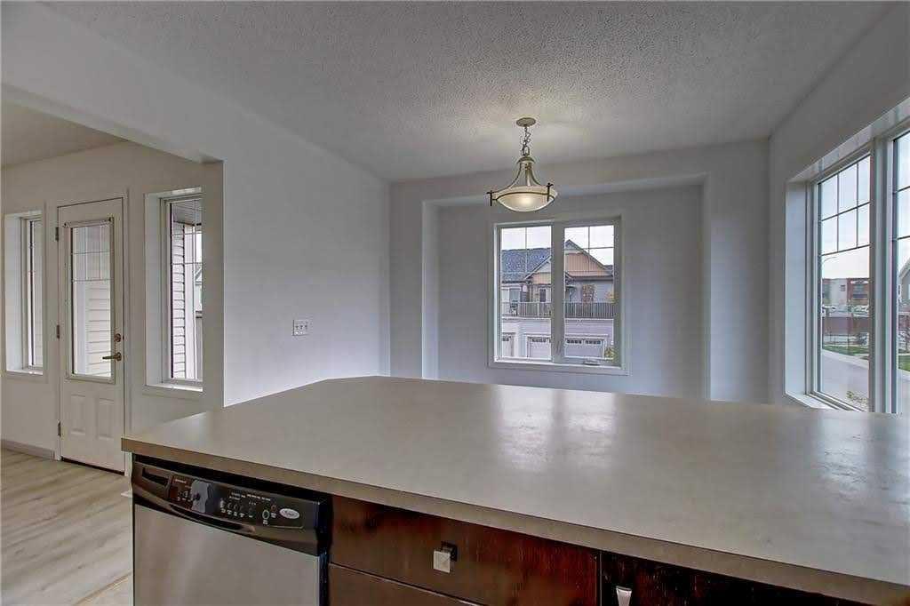 Beautiful Corner Unit with NO CONDO FEES ! This home offers 4 Bedrooms,2.5Baths,Generous Living Area 1482.4 Sqft, Attached Oversize Single Garage 288.3 Sqft. The total Area is 1770.7 Sqft. Master Bedroom Fresh Paint, laminate Flooring, with a 4PC private bathroom ! Main level welcomes you to an open foyer with access to a multi-use room that you can be used as 4th Bedroom. The 2nd level has a open concept Family room that leads to a large balcony for outdoor enjoyment, kitchen with generous cabinet & counter space, and very good size dining area with new laminate floor. The brand-new stainless fridge washer and dryer. The upper level has 3 good size bedrooms, 2Full bathrooms and large Mater with -vaulted ceilings, walk-in closet and Master Ensuite! This home offers an Excellent Location at the quiet street, being a short walking distance to elementary and high schools, parks, and shopping at Coopers Town Promenade! This home is a MUST SEE !