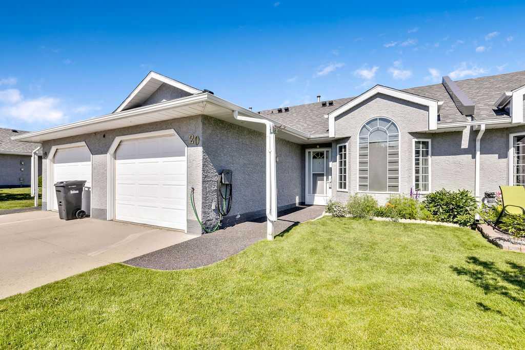 Welcome home to this well maintained Adult Living complex (50 +). This unit is located in a quiet cul-de-sac, and backs onto a canal and walking path. The moment you enter the home you are greeted by ceramic tile entrance and beautiful hardwood throughout the living room, dining room, hallway, primary bedroom and the flex room. The Kitchen, bathrooms and laundry room all have Lino, no carpets, so great for allergies or pets. The upgraded hardware is in brushed nickel with lever handles! Lighting fixtures in the living room and dining room have been upgraded as well. The kitchen boasts nice wood cabinetry with Stainless steel fridge, stove and Microwave hood fan. The flex room has a skylight which floods the room with natural light, perfect for hobbies and crafts or just enjoying the natural light. The front loader washer and dryer are just off the garage entrance with the handy 2 piece bathroom as well as closet. The primary bedroom is located right next to the 4 piece bath (Jetted tub)! The one window panel has been ordered and will be replaced as soon as it comes in (the seal is broke). There is a large crawl space with plenty of storage available. The fully fenced back yard has flower beds and an awning, and nice patio (10'X20') for relaxing and watching the birds and deers by the canal or barbequing! The front attached garage adds convenience in the Winter months, with access from the laundry room. Don't wait on this unit they sell quick and it is a tight knit community!