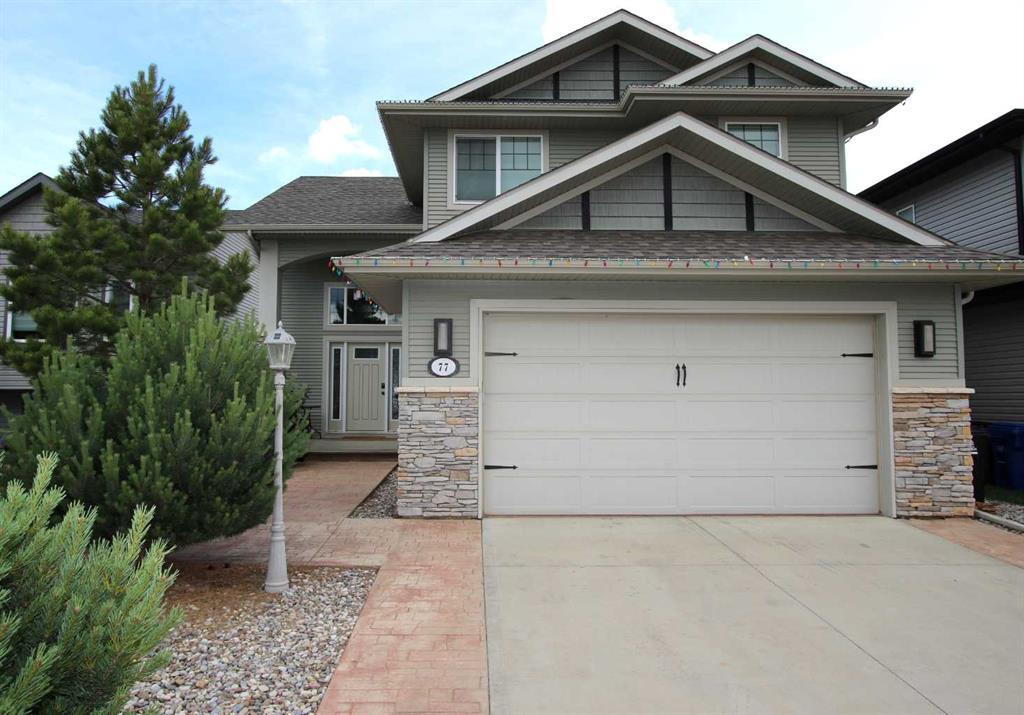 Stunning Upgraded Modified Bilevel – 5 Beds | 3 Baths | Finished Garage | A/C & In-Floor Heat. Welcome to this beautifully upgraded modified bilevel, offering 5 spacious bedrooms and 3 full bathrooms, ideally located near schools, parks, and restaurants. From the moment you arrive, you'll be impressed by the excellent curb appeal, featuring a stamped concrete bordered driveway and a charming tiled front entryway accented with decorative wainscoting. Step inside to a warm, inviting home with vaulted ceilings and hardwood stairs leading to the open-concept main floor. The kitchen is a standout with two-toned maple cabinetry, full tile backsplash, crown moldings, corner pantry with glass door, granite sink, wine storage, under-cabinet lighting, pot & pan drawers, and an induction stove — all enhanced by rich hardwood flooring. The bright dining area opens to a partially covered deck, perfect for BBQ and entertaining. Relax in the cozy living room featuring a gas fireplace with tile surround, white mantle, framed with elegant wainscoting. There are two generous bedrooms and a 4-piece tiled bathroom on the main level. Upstairs, the king-sized primary suite offers double windows, a ceiling fan, a walk-in closet, and a luxurious ensuite complete with a corner jetted tub and separate shower. The fully developed basement offers excellent living and entertaining space, including a family room with decorative pillars, a wet bar with maple cabinets, built-in speakers, and two additional bedrooms—one behind double French doors (ideal for a home office). Another 4-piece tiled bathroom and a large utility/laundry room complete the lower level. Enjoy the landscaped, fully fenced yard (vinyl fencing), and a heated, fully finished garage with epoxy floors, upgraded baseboards, modern lighting, and A/C. Additional upgrades include in-floor heat, water softener, high-efficiency furnace.