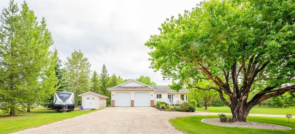 HUGE PRICE REDUCTION! Welcome to Maple Grove! An acreage located on the southeast edge of City limits, with pavement to the front door. This acreage offers over three acres of manicured land with beautiful mature trees, well thought out flower and shrub beds along with plenty of grassed areas for the kids to run and play, plus a firepit area. With only one owner, this custom-built raised bungalow with five bedrooms and four bathrooms has been well maintained with many updates over the years. The main level of the home exudes warmth from its finishes and the abundance of east, south and west facing windows that allow for natural light to flood the home, while you get to take in the beautiful yard from many different angles. Its open concept living between the living room with its cozy fireplace, to the dining area and the spacious kitchen with its sit-up eating bar. You will be drawn to the three-season sunroom and BBQ area to the rear of the home. Off the kitchen there is a laundry room as well as a half bath that is handy to both the rear yard and the sunroom. Down the hallway there are two good-sized bedrooms as well as a main bath with a jacuzzi tub and a primary suite where you will find more than enough room for your king-sized bed, plus there’s a three-piece ensuite. Downstairs, the fully developed basement offers an oversized family room with a second fireplace and lots of space for a games or craft area. Besides this there are two more bedrooms each with walk-in closets, a full bathroom, a large storage and the cutest kids’ play area. The 24’ x 24’ attached heated garage has two overhead doors plus two-man doors that offer convenient access to both the rear yard and the front sidewalk and yard. There are two sheds, with the largest being a 10’ x 14’ shed for storing yard equipment. The new owner is sure to appreciate the irrigation system with its three different lawn zones as well as three spigots for hose connections. With views from the kitchen sink and the sunroom, the new owner will appreciate being able to watch the kids play at the play fort. Enjoy being on the edge of Grande Prairie with all its amenities plus having County taxes and snow removal! Acreages like this are hard to find. Call your favorite Realtor to book your viewing before its gone.