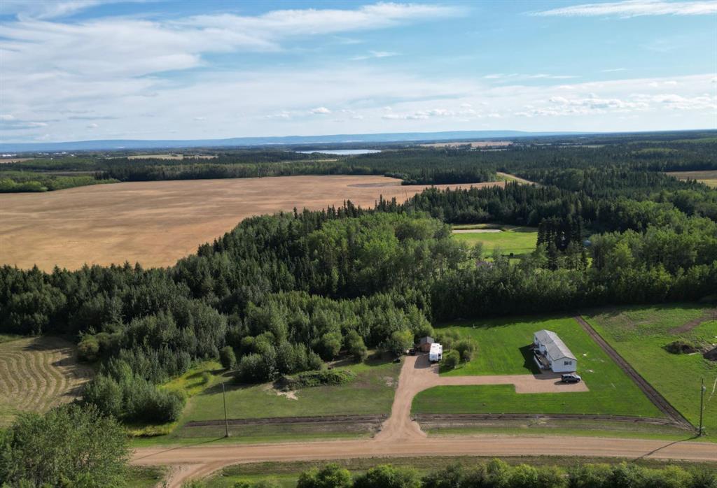 Dreaming of living the acreage life? Look no further! This private and peaceful acreage is nicely tucked away on a 3-acre lot just 5 minutes north of La Crete with minimal gravel road to get there! The yard was thoughtfully established last year with a gravel parking pad, full services brought in, complete landscaping, and perimeter tree planting for added privacy and charm. The beautifully updated 2007 20-wide mobile home features two brand new decks to enjoy the outdoors, and a spacious, family-friendly layout. Inside, you'll find a large entryway, an open-concept kitchen, dining, and living area with vaulted ceilings and brand new flooring throughout. The kitchen includes a corner pantry, island, and full set of appliances. Two bedrooms and a full bath are located at one end, with the master suite at the other, complete with a walk-in closet and a luxurious jet tub in the ensuite. A separate laundry room with outside access adds to the practicality. Lot has a large natural tree buffer along the East and South boundary, and also comes with a wired 12 by 16 shed. This is a great property at an affordable price—come take a look today!