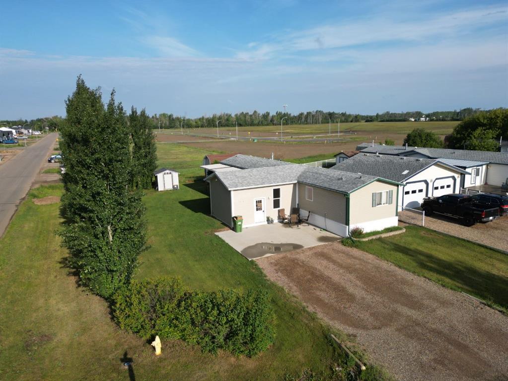 Welcome to this inviting 3-bedroom, 2-bath home on its own private lot, offering both comfort and functionality. Step into the ground-level entry with a spacious foyer that leads up to a bright and open main living space. The layout is perfect for entertaining or everyday living, with a large kitchen, living, and dining area all flowing together under vaulted ceilings. The kitchen features an abundance of cabinets, a corner pantry, and all appliances included. On one end of the home, you’ll find two bedrooms and a full bath, while the master suite is tucked away on the other, boasting a luxurious ensuite with a jetted tub and extra space to unwind. A patio door off the dining area opens onto a covered deck—the perfect spot to relax and enjoy the sunset. The lot is beautifully bordered by mature trees along one side, offering added privacy and a peaceful outdoor space. A storage shed is included for added convenience, and the home is equipped with an insulated skirting package for improved efficiency. With numerous recent updates, this property is move-in ready—come take a look for yourself!