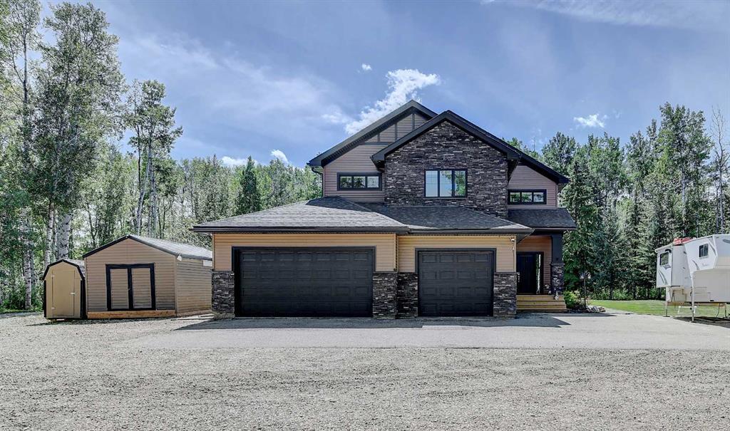 Just minutes from Grande Prairie in desirable Mystic Ridge, this fully upgraded 4-bedroom, 3-bathroom home sits on a high lot. The spacious triple car garage features in-floor heat, and a stunning 2019 built 42x40 shop with a 24x12 addition that offers radiant heat, epoxied floors, and transparent overhead doors that fill the space with daylight. Inside, you'll find granite countertops, a gas stove, stainless steel appliances, and three natural gas fireplaces—one each in the main living room, basement family room, and the primary bedroom. Soaring 16-foot ceilings and expansive windows create a bright and open main living space, complete with built-in speakers throughout. There is a large, open air office area leading into the luxurious primary bedroom, that includes a gas fireplace, 4-piece ensuite with a steam shower, and walk-in closet. The fully developed basement features a wet bar with fridge, additional bedroom and bathroom, and in-floor heating. Enjoy seamless smart home living with a Control4 system managing your entertainment, and A/C to control the temperatures. Step outside to a newly built deck, gas lines to both BBQ and firepit (under the gazebo), outdoor speakers, a natural firepit area, woodshed, and a beautifully landscaped garden oasis basking in sun all day long. A newly installed 3-stage septic system completes this incredible package. This home is absolutely gorgeous and sits on a beautiful 2.79 acre lot. There is also a large shed, RV dump and hookups. It truly has it all, book your showing today!
