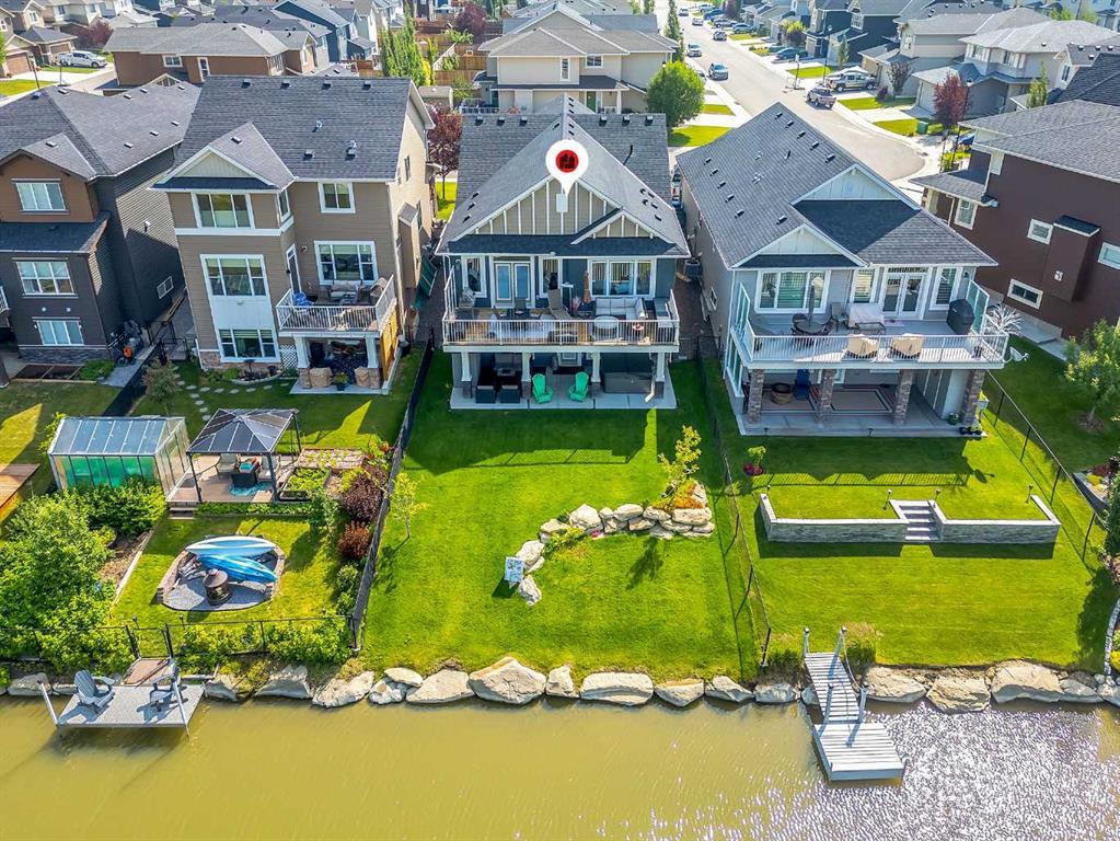 Get ready for the ultimate summer lifestyle in this beautifully appointed, air-conditioned walkout bungalow with direct access to the canal. Launch your pedal boat or kayak right from your backyard and spend your days on the water! Step inside to 9’ ceilings and a bright, open-concept layout designed for entertaining. The kitchen features ample cabinetry and a large island perfect for gatherings and flows effortlessly into the dining and living areas. Enjoy canal views from the living room, complete with a fireplace that anchors the space. Walk out onto the expansive deck that spans the width of the home—perfect for soaking up the west-exposure sun. The main floor also includes a dedicated office, convenient laundry, and a serene primary suite with a walk-in closet and a spa-inspired ensuite offering dual sinks and an oversized shower. Head downstairs and let the good times roll! The fully finished walkout basement features a stylish entertaining bar, spacious rec room with a second fireplace, two large bedrooms, a full 4-piece bath, and more storage than you could possibly need. Whether it’s poker night or game day, this level delivers. Step out to the covered patio with plenty of seating, or relax in the hot tub—yes, it could be included! The yard is nicely landscaped with a low-maintenance irrigation system, and if you want your own private dock, you can build one right here. Located in the heart of Airdrie, Bayside is a premier community that perfectly balances nature and convenience. Families will appreciate the safe, friendly environment, with multiple schools nearby and a host of community parks to explore. With proximity to Calgary, the airport, and all the amenities that Airdrie offers, this canal-side home is a rare find and the perfect place to call home!