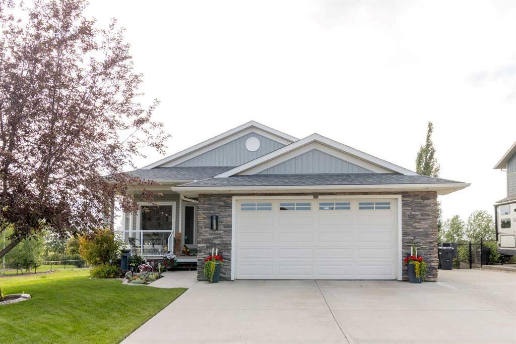 Immaculate Walkout Bungalow Backing Onto the Canal in Hillcrest Manor Estates. One of the sought after streets in Strathmore – Move-In Ready and Fully Upgraded. This beautifully maintained open-concept walkout bungalow is a rare find, backing directly onto the tranquil canal and showcasing pride of ownership throughout. From the moment you arrive, the home impresses with its clean, contemporary curb appeal, new siding and roof, and a welcoming covered front entry. Inside, you’ll find a bright and spacious main level designed for comfort and entertaining, with a gas fireplace. The gorgeous kitchen featuring granite countertops, a new granite kitchen sink and taps, under-cabinet lighting, and plenty of floor to ceiling soft-close upper cabinets and lower cabinets are drawers for storage and prep. The open-concept layout flows into the dining and living areas and continues into a stunning sunroom complete with a cozy fireplace, offering year-round enjoyment and views of the mountains. Walk out to the newly built composite deck with attached pergola—a perfect place to relax, host guests, or take in the peaceful setting. The main floor also features laundry for added convenience, as well as updated bathrooms with new granite counters, sinks, and taps. A spacious primary suite on the main floor with 4 pc bath. The fully finished walkout basement offers in-floor heating, newly painted walls, and generous additional living space with a recreation area and guest suite. Recent mechanical upgrades include a new large hot water tank, a water softener, central air conditioning installed just two years ago, and an installed central vacuum system. A new reflective window film on the exterior improves energy efficiency and privacy, while still allowing in natural light. Outside, the beautifully landscaped yard includes an underground sprinkler system and an impressive outbuilding - a large 20’x12’ shed with a garage door, perfect for tools, storage, or a workshop. The oversized garage is insulated, drywalled and painted. With its peaceful canal-side location, thoughtful upgrades throughout, and immaculate condition, this home is truly move-in ready and feels like a private retreat while still offering every modern convenience and is just a short drive to the golf course.