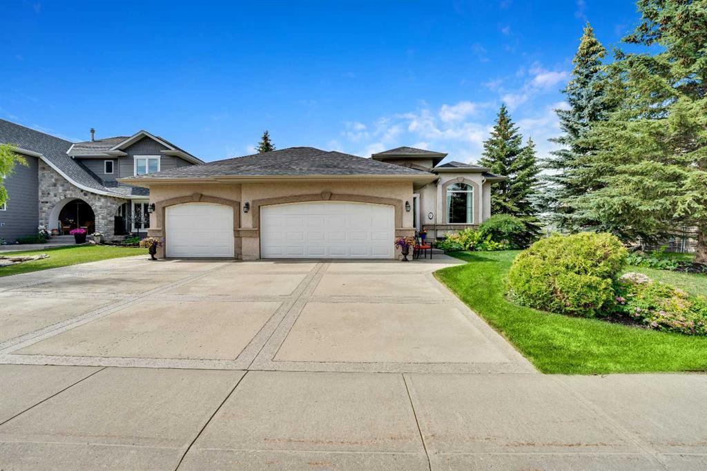 Welcome to this beautiful 2+3 bedroom 3 bath walkout bungalow nestled in the prestigious Deer Ridge Estates subdivision offering peaceful lake views and stunning sunsets. This home was thoughtfully designed for everyday living and elegant entertaining this home features a bright and open kitchen/living room featuring gleaming hardwood floors, 10' ceilings, 9' interior doors and skylights for more natural light. The kitchen is chef's dream with ample counter space, a walk in pantry and built in china cabinet and a dedicated computer /writing desk. Family and friends will gather around the large island complete with eating bar and bar sink . Enjoy family meals in the breakfast area or host formal gatherings in the elegant dining room. Garden doors adjacent to the breakfast area lead to the south facing glass enclosed 12'x40' south facing deck. The living room centers around a natural gas fireplace with windows looking to the lake. This spacious home offers 2 bedrooms on the main floor, 4 piece bath with soaker tub and laundry /mud room leading to the triple car heated garage. The Primary suite with a large walk in closet includes a 4 piece ensuite with soaker tub and walk in shower. Your private door provides access to the deck. The second bedroom is large enough for a queen sized bed. All closets throughout the main floor are complete with closet organizers. A curved lighted staircase leads down to to the expansive walkout basement featuring 3 large bedrooms, an expansive home office and a cozy family room complete with gas fireplace with built in cabinets and bookshelves. The in floor heating provides warmth for winter evenings. The basement opens onto a covered patio and beautifully landscaped yard , a perfect setting for relaxation or entertaining. No need to worry about the hot summer days as the home has central air conditioning to keep the family comfortable. Pride of ownership is evident from the well maintained mechanical systems to the irrigation system for the yard. Call your realtor today to book a showing.