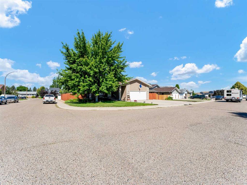 Beautiful corner lot bungalow located in SE Southridge 3-4 blocks walking distance to k-1-9 schools, city bus route and playgrounds along Strachan Road . The subject site is attractively landscaped both front and rear. There is RV parking for a specific size RV unit on a concrete pad located at the front attached garage entry with direct access to Stapeford Crescent. Being a corner lot the subject site is adjacent to city street parking. .This attractive bungalow offers 3 main floor bedrooms , main floor laundry facilities , main floor full bath and a 3 piece Primary Bedroom ensuite, open kitchen area and a dining room with a bay window. The large raised covered patio with stairs leading to the rear yard has direct access to the kitchen and the dining room . The front living room is open in design with direct access to the attached front heated garage and to the lower basement developed area. The basement development consists of the furnace room , one bedroom , a 3 piece bath and a large family room with a gas fireplace. The floor plan is very open and functional in use .The subject home shows very well on the exterior because the site is a corner lot. The rear alley provides access to the adjacent city streets bordering the subject site. The area located below the rear deck is enclosed providing great storage areas in addition to the shed located in the deck area on a concrete pad. The rear yard is completely fenced . The subject is a fabulous family home ` that must be seen .