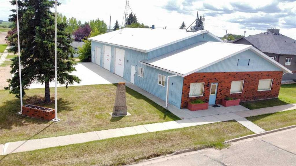 Endless possibilities with this commercial property within 15 minutes to Camrose! You walk into the 19' x 44' front office area offering two washrooms, a large reception area, storage room, main office and conference area. On your way into the 56' x 44' shop, you'll walk through a 12' x 24' staff room! The shop is equipped with all new LED lighting and paint to ensure full and bright visibility of any task at hand with three large overhead doors (two doors are 12'x12' and one is 10'x10') and 14' ceiling height to accommodate many different types of vehicles or machinery. The shop also has 2 washrooms and an office with a viewing window into the shop. There is also plenty of storage in the Mezzanine space and you'll love the newly poured 57' x 41' concrete apron. This building has previously been used as a bank, fire station, day care center and more as it offers so much flexibility with the office space up front and shop in the back.