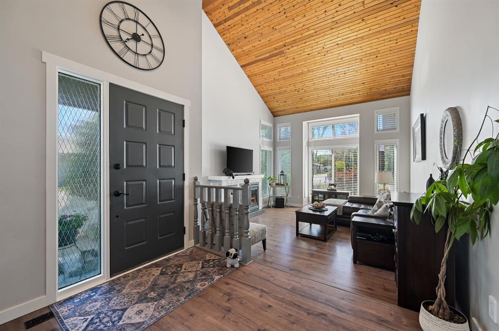 Beautiful Family Home on a Lakeside Corner Lot in High River. This well-maintained and thoughtfully updated four-bedroom, four-and-a-half-bathroom home offers comfortable living with over 2,800 sq/ft of finished space in one of High River’s most scenic neighborhoods. Set on a corner lot backing onto a quiet lake, this property gives you year-round outdoor enjoyment from kayaking and fishing in the summer to skating in the winter - all just steps from your backyard. From the moment you arrive, you'll be captivated by the unique and artistic hand painted stenciled front steps. Inside, the main living area features high vaulted ceilings that create an open, welcoming space filled with ample natural light. Stay warm and cozy all winter long with both a wood burning fireplace and a gas fireplace to choose from. The home’s layout includes four generously sized bedrooms and plenty of bathrooms, making it ideal for families or those who enjoy hosting guests. The kitchen and dining areas flow nicely to the back deck, which comes with a gas hookup for your BBQ, perfect for easy outdoor meals. Outside, you will love the peaceful backyard oasis complete with a garden, water feature, and oversized shed for extra storage. The no carpet design throughout the home adds to its clean, low maintenance appeal. Recent updates include new furnace motors and blowers (as well as regular maintenance) and a roof replaced just seven years ago with asphalt shingles, so the big-ticket items are already taken care of. This is a great opportunity to own a beautiful home in a quiet lakeside location, close to nature and all the amenities High River has to offer. Please note: 1. All of the furniture is available for purchase for an additional cost.