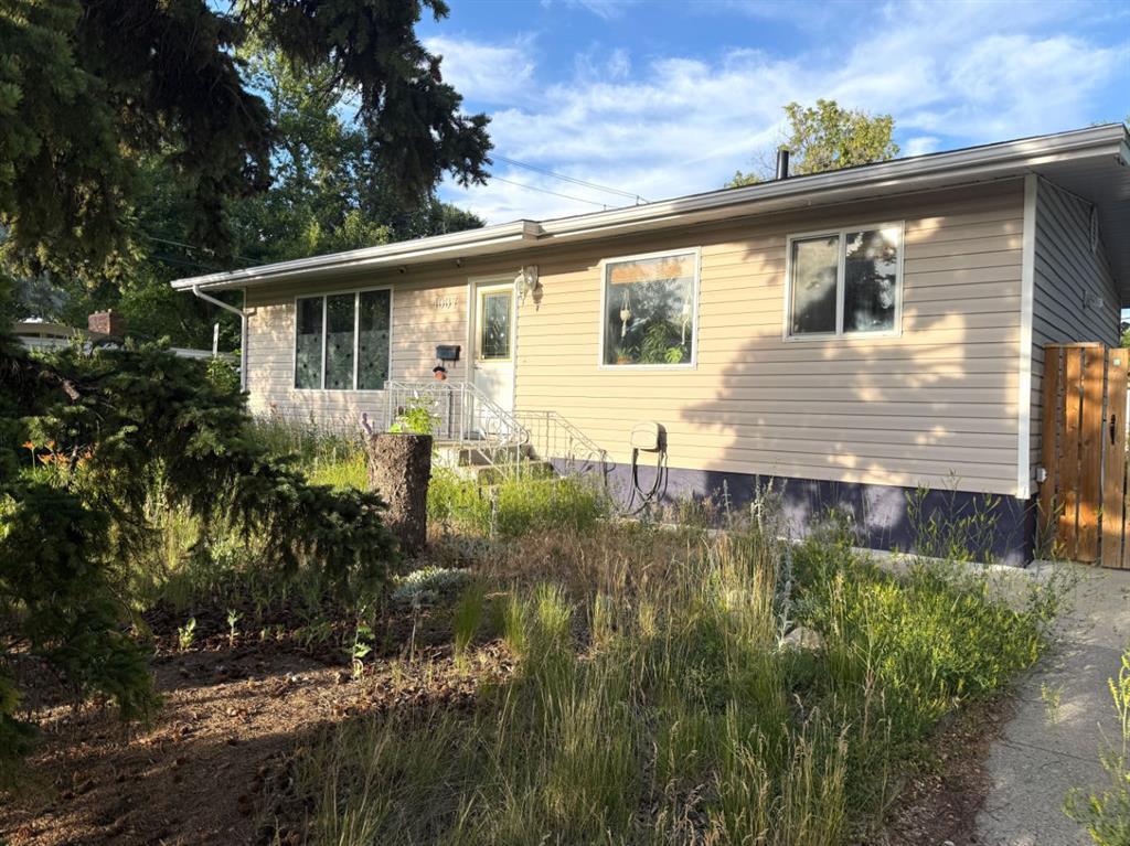 Excellent Location across from Henderson Lake Golf course! This 5 bedroom Bungalow has lots of natural light, A/C, hardwood, newer appliances. There are 3 bedrooms on the main floor and an additional small bedroom down as well as a good sized incomplete bedroom in the basement. The house is nestled into a spacious lot with off street parking, a side alley as well as a rear alley and boasts a large beautiful yard with the possibility of a future double garage. A new roof was added in the last 3 years and solar panels were added at that time. These panels have saved the owner approximately 75-80% off of the utility bills each year, a copy of rebates and minimal monthly costs are available. The property requires some updates and finishings. Bathroom is functional but will need an upgrade.. The downstairs cold room could possibly be converted into a second bathroom. Hallway to the backyard is stripped of the old flooring and ready to be redone, extra boxes of laminate are available. Book your showing with a realtor today and bring your ideas to make this home your own.
