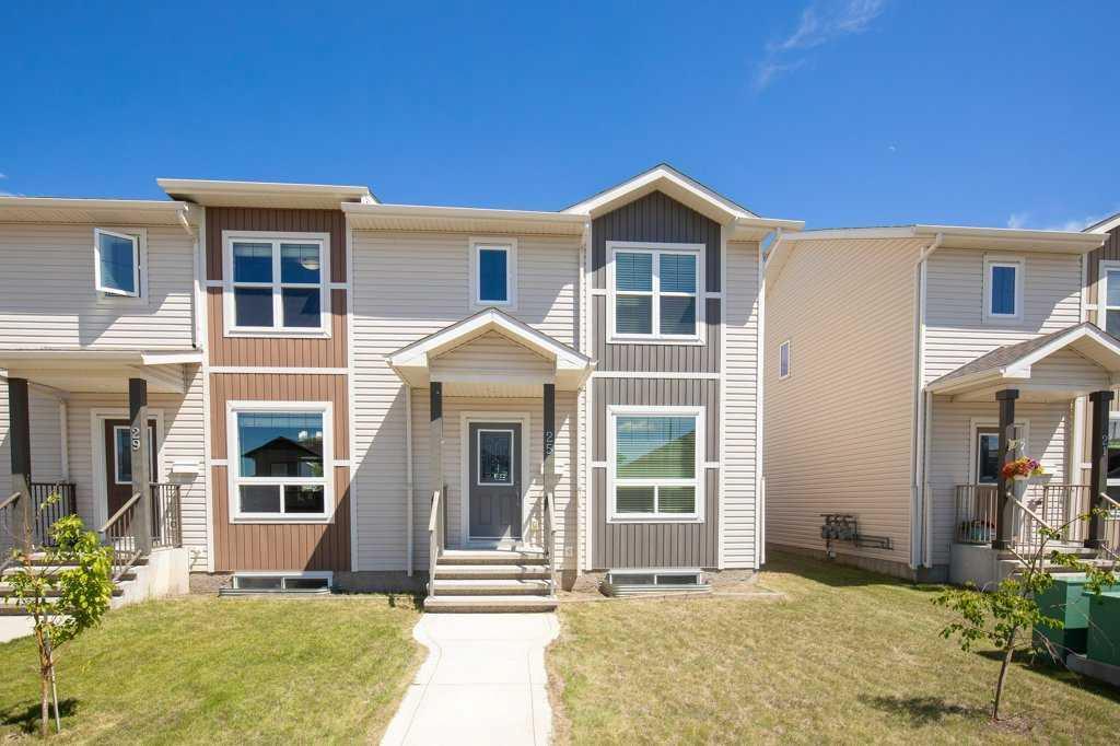 Immaculate End Unit townhouse with Gorgeous Vinyl Plank flooring on the main floor, located in the family neighborhood of Blackfalds. Built by True-Line Homes, this home was built with quality and pride. Boasting 3 bedrooms, 2.5 baths it features a bright kitchen, main floor laundry, large living area, large Primary Bedroom with Ensuite. The large, fully fenced yard with full deck backs onto a back alley leading to the parks, walking paths and more.