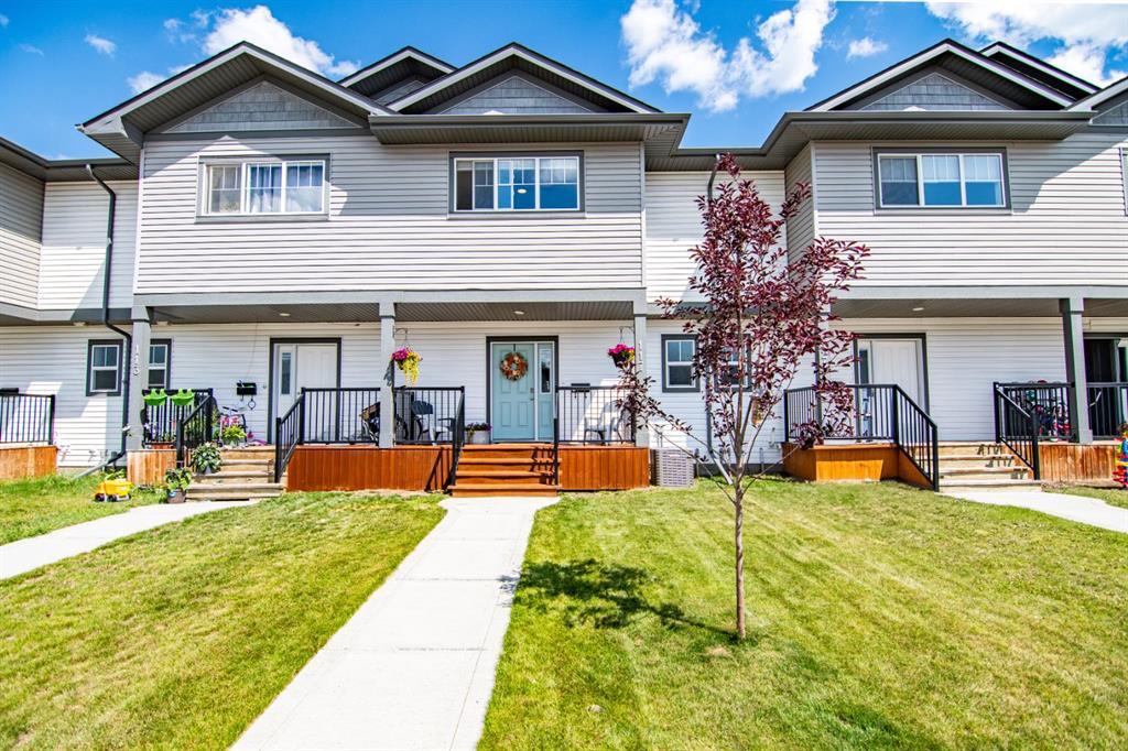 Welcome to this beautifully designed townhome in the rapidly growing community of Blackfalds! This 3 bedroom, 1.5 bathroom home offers both style and functionality with 9-foot ceilings, central air conditioning, and a bright open concept layout filled with natural light. The kitchen is a standout, featuring modern cabinetry, stainless steel appliances, and a quartz island perfect for entertaining. Upstairs, the spacious primary bedroom includes a walk-in closet and convenient pocket door access to the 5-piece main bathroom. You’ll also find two additional bedrooms and laundry on the upper level for added convenience. The undeveloped basement provides the opportunity to customize with space for an additional bedroom, bathroom, and family room. Outside, enjoy the fully fenced yard, a rear deck, and a parking pad. A fantastic opportunity to own a modern, move-in ready home in one of Central Alberta’s most desirable communities!