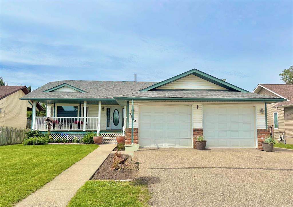 A rare find awaits you! This well cared for 1539 sqFt bungalow offers everything you could need on the main level. Enter the home from the covered front porch to a nice size entry with a coat closet and access to the double garage. The man level is open and bright with large bay windows and high vaulted ceilings. Quality oak cabinetry in the large kitchen featuring an island and corner pantry. The front living room has a modernized fireplace, bay window and in-laid carpeting and hardwood floors that flow through the rest of the main level. Off the dining room is access to an enclosed room with a hot tub and from there you have a covered deck to enjoy! Upstairs features three bedrooms including a primary with an ensuite. There is also a laundry/storage room on the main level. Laundry can be here or in the basement but hook ups are currently only on the main level. The basement is mostly finished and has a good sized family/rec room with new vinyl flooring with the other half currently a large storage room that could be converted back to add to the living space. There are two additional bedrooms in the basement plus an office that could be a bedroom. A full bathroom completes the lower level. Located walking distance to most schools, some parks and the towns extensive walking path. The nice sized yard is fenced and also offers a large RV parking space alongside the home not to mention the front parking pad and attached double garage. A lot to offer here on a well cared for home.