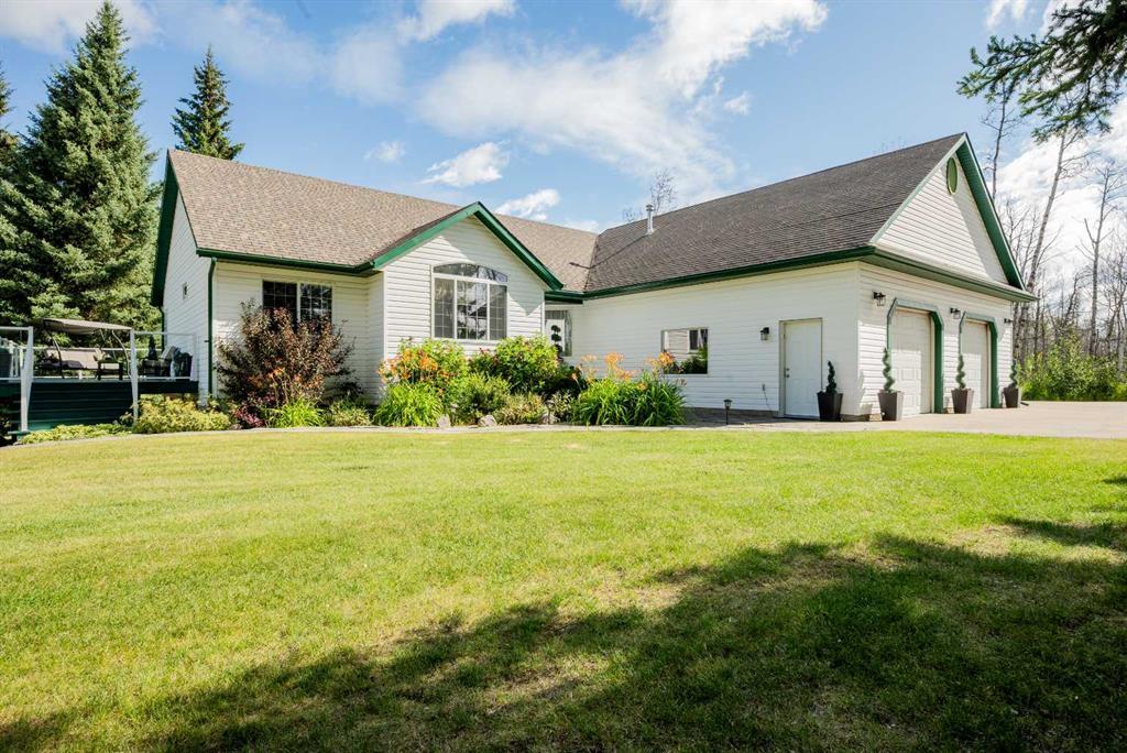 The main floor primary bedroom is a true retreat, complete with a tray ceiling, an ensuite with a jetted tub, and direct access to the top deck—ideal for enjoying your morning coffee, enjoying the views and privacy afforded by this exclusive acreage.