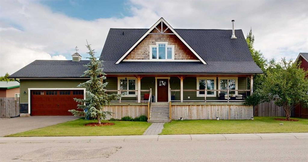 This charming one-and-a-half storey home offers timeless curb appeal with its welcoming covered front porch, cedar shake accents, and beautifully landscaped front yard. Inside, the open-concept living room showcases soaring vaulted wood-paneled ceilings and a cozy wood-burning stove that anchors the spacious main area. The bright kitchen, complete with a gas stove, flows seamlessly into the dining space—perfect for entertaining. The main level also includes a bedroom, a mudroom with laundry and a pantry, a 3-piece bathroom, and access to the double garage. Upstairs, a lofted living space overlooks the main floor, adding character and versatility, while the large primary suite features a jetted tub, walk-in shower, and a walk-in closet. The finished basement offers two additional bedrooms, a 3-piece bathroom with a sauna, a family room, and ample storage. The fully fenced backyard boasts a 3-tiered deck and generous yard space, while RV parking and thoughtful design throughout make this home as functional as it is beautiful.