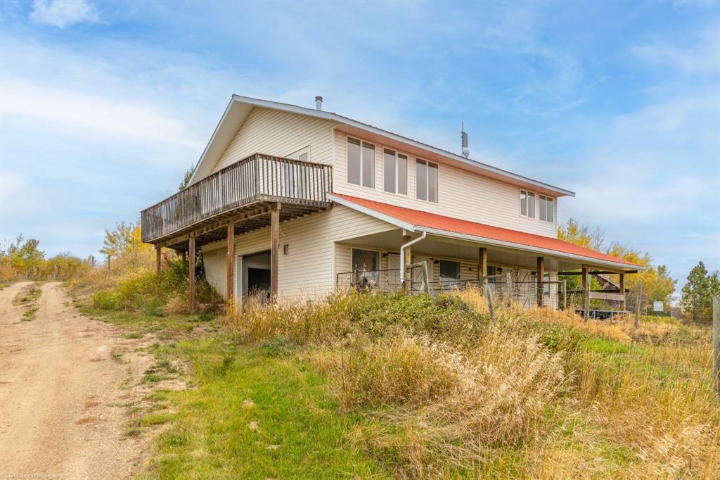 This unique property offers endless opportunities! Situated on 6.9 acres with a private well and a septic field system, there is some fencing done for animals with automatic watering bowls, lots of trees for shelter and chokecherry and Saskatoon bushes. The home was built in 2002 and the basement walk-out level is 30x40 garage that is currently set up as a barn. On this level you'll also find a 2 piece bathroom and 2 storage rooms. The main floor of the home offers spectacular views and an open concept great room with vaulted ceilings, hardwood flooring, custom hickory wood cabinetry and a wood stove. There are 2 bedrooms and a full bathroom. You'll also find a flex space adjacent to the main area with the laundry, storage and is perfectly set up for a home business, office, additional family room, play room, yoga space, etc. This property is located only 10 km from Paradise Hill and 45 km from Lloydminster.