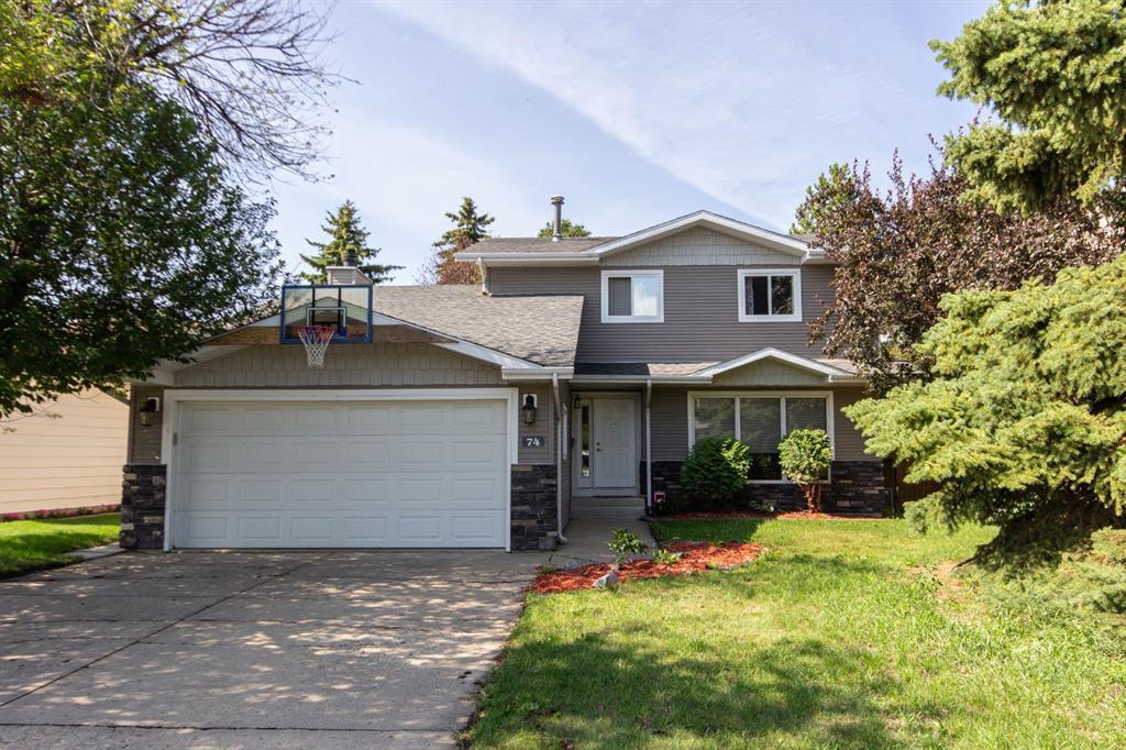 If you’ve been searching for a large family home in a great location, this could be the one! This spacious 2 storey home offers more than 3,000 square feet of total living space including 4 bedrooms on the top floor. Situated on a quiet tree lined street in Rosedale, this property is just down the street from a large park and green space reserve with playground, basketball/tennis courts, and skating rink in the winter. A number of upgrades to this home include many newer windows, totally renovated exterior with vinyl siding, stone work, shingles, etc, updated interior doors, updated flooring, bathrooms, central A/C for the upper floor, and a fully renovated kitchen! Inside you’ll find hardwood flooring that runs through a formal living room with wood fireplace, huge family and dining room spaces, and a fully renovated kitchen with beautiful raised maple cabinetry, upgraded stainless steel appliances, and a live edge wood eating bar next to the breakfast nook. Main floor laundry, a 2 pce bath, and access to the covered rear deck and nicely landscaped yard complete the space. Upstairs offers a total of 4 bedrooms which includes a spacious primary bedroom with double closets and a renovated ensuite with an oversize shower, updated tile work, updated flooring, and updated fixtures. The other 3 bedrooms share a renovated 4 pce bath. The basement is fully finished (completed in 2013) with a huge family room and rec room space with wet bar, 3 pce bathroom with tiled shower, and an unfinished hobby room with sink that could be converted into a 5th bedroom.