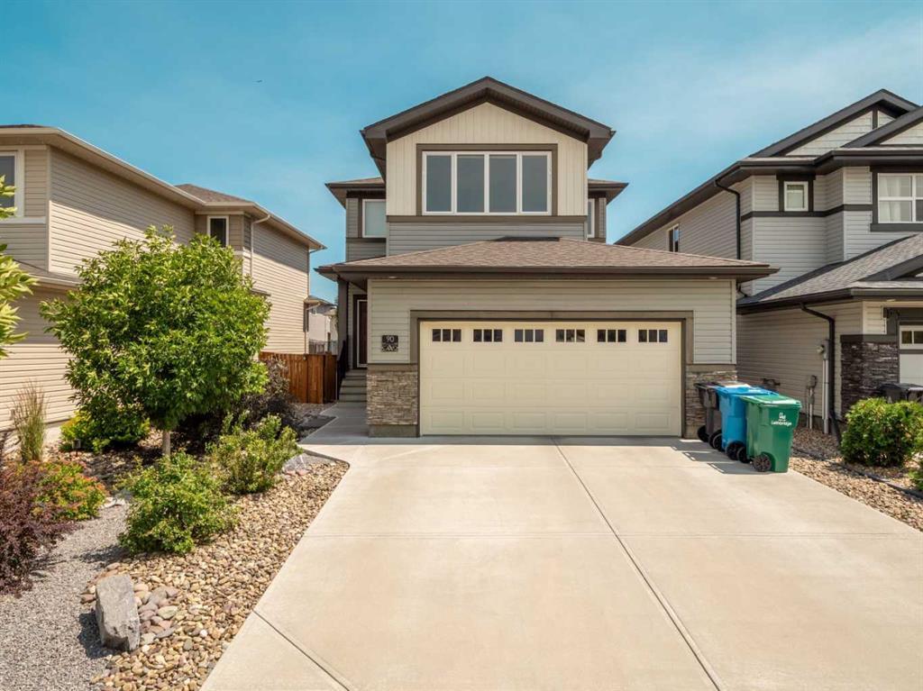 Beautiful 2 storey home in desirable Copperwood neighbourhood close to many west side amenities! Walking up, you'll notice the professional low maintenance landscaping. Inside, you'll find a welcoming entry open to above. Main floor features laminate floors and 9 foot ceilings. Open plan for kitchen, living room, and dining space. Large kitchen has white cabinets, quartz counters, stainless steel appliances, bar/coffee area with 2nd prep sink, and large pantry. Just through the bar/coffee area is the mudroom with an entrance to the garage. Living room features built-in shelving, elongated electric fireplace, and large windows that let in tons of natural light. Dining room also has large windows and door to deck out back. Professionally built east facing deck is 13’ by 15’ & features composite boards, an attached pergola with sun shade, and privacy wall. Perfect for entertaining! Back inside, a two piece bathroom can also be found to complete the main. Upper level houses a beautiful bonus room with vaulted ceilings. There are also 3 bedrooms, including primary bedroom with built-in shelves, walk-in closet, and a 5 piece ensuite featuring double sinks, separate tub, and walk-in shower. Upper level also includes a 4 piece bathroom with tub/shower combo, and a separate laundry closet in the hall with full size washer and dryer. Basement is undeveloped but could house 2 more bedrooms, a full bathroom, and a family room when you are ready to make it yours. Backyard is fenced and features a professionally poured concrete patio that’s approx. 13’ by 15’ for further entertaining. Backyard also has more low maintenance landscaping. Home has conveniences of central a/c to keep cool in the summer, & black out blinds in the bedrooms for privacy and blocking out light when needed. There is a double attached garage for your vehicles and it is pre-plumbed for a future gas heater. Garage also features extensive custom wood shelving and a workbench! Just around the corner is an entrance to Miners Landing Park with walking path and pond. Move in and enjoy!