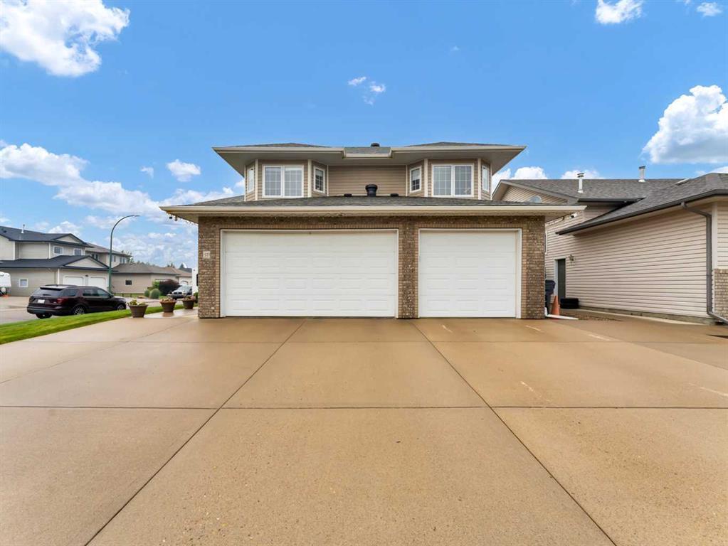 Welcome to 97 Stratton Close. As you drive up, you will notice there is room for a 40 foot RV. You will also notice that there is maintenance free fencing and decking. As you pull into the front you will also notice a 31 x 29 triple garage and a five car driveway. Once inside, you will see a large entrance with a very generous entry closet. Once you go up to the main floor, you will see a large kitchen, eating area and front room with vaulted ceilings. The kitchen has an island with a breakfast nook for six people and an eating area that will fit the largest family as well as a very cozy family room. There is also an enormous laundry room with lots of cupboards and a closet. This room could easily be changed into a bedroom if needed, and the washer and dryer could go in the utility room. There is also a bedroom and three-piece bathroom off the kitchen. When you go upstairs to your master retreat, you will find a gigantic bedroom with a 10 x 6 closet and a five piece bathroom with a double soaker tub , double shower and double sinks. In the basement there is a large family room with a gas fireplace and two more bedrooms approximately 14×12 with large walk-in closets. There is also a three-piece bathroom with lots of counter space. The furnace room has lots of storage as well as under the front entry storage. The very large three car garage 31 x 29 has room for all your vehicles and toys, it is heated drywalled and also has a 240 V EV plug. If you paid close attention, you will have notice that there are not any hallways in this home. The roof was done in October of 2023. the hot water tank was replaced in 2017. The fridge and stove are barely 2 years old. Paint and flooring are also quite new. Call your favorite REALTOR® for a showing, you will not be disappointed.