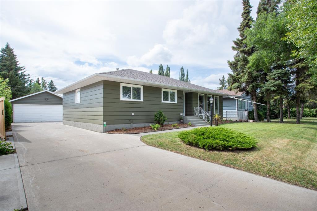 PRIDE OF OWNERSHIP! From the moment you step inside, you can feel how well this home has been cared for. Built in 1960, this 1,380 sq. ft. bungalow has been thoughtfully updated over the years while keeping its welcoming charm. The main floor feels bright and open, with a kitchen that’s been refreshed and centered around a handy island—perfect for setting out snacks when friends drop by. The dining area has room for a large table and leads right out to a private deck where you can enjoy your morning coffee. The living room’s custom oversized windows bring in an abundance of natural light. Three bedrooms are tucked down the hall, along with a full bathroom and a clever shared-access half bath with a vanity near the back entrance. Downstairs is a space that feels ready for anything—movie nights, a playroom or a hobby area—with a huge family room, a large bedroom and an updated three-piece bathroom with direct or shared access. The laundry and utility room is spacious with built-in storage to keep everything organized. Step outside and you’ll see why this property stands out. The yard is beautifully landscaped with mature trees, a garden area and a new fence giving you both privacy and a sense of calm. There’s plenty of off-street parking—room for up to six vehicles—with the 24' x 26' double detached garage (with new shingles and roof work completed in 2025), rear alley access and upgraded concrete driveway and walkway. Recent updates bring peace of mind: a new dishwasher, a new bathroom vanity ready for the upstairs bathroom, new A/C in 2025, and the garage shingles and roof repairs also completed in 2025. The home itself has 30-year shingles installed within the past few years, a high-efficiency furnace, a hot water tank, and 100-amp electrical. This is a home that’s been well-loved and well-maintained—ready for its new owner!