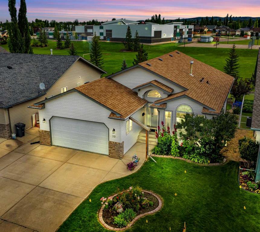 Falcon built walkout bungalow nestled in a quiet crescent in the prestigious Lancaster Green area, backing onto an expansive green space (that's right - no neighbor's behind). As you enter, you're welcomed by a spacious foyer leading to a open floorplan and vaulted ceilings! The renovated kitchen features ample cupboards, large island with dual sinks and water filtration system, quartz countertops, a walk-in pantry and stainless appliances, perfect for culinary enthusiasts. The designated dining area leads to a deck with natural gas hook up and is perfect for entertaining and enjoying views. The living room, equipped with a cozy gas fireplace also boasts large windows flooding the area with natural light. The primary bedroom features an ensuite with a corner jetted tub and separate shower. An additional 4pc bathroom, main floor laundry and office / bedroom complete the main floor area. For entertainment, the lower level includes a wet bar and a spacious rec room that leads to the landscaped back yard complete with poured concreted patio and firepit. The downstairs walkout also features 2 more bedrooms, 4 pc bathroom, big bright windows, storage and in-floor heat. Key upgrades and extra features include: complete kitchen renovation in spring 2021, main floor laundry, central air conditioning, CAT5 wiring, built-in speakers, tall arched windows, art niches, hardwood & tile flooring, and updated hot water tank in fall of 2020. The property includes a fully finished and heated double attached garage and benefits from close proximity to local schools like Saint Francis Middle School, enhancing its appeal for families. This home not only offers a family friendly living environment but also integrates practical amenities for everyday convenience, making it an ideal choice for those seeking style, comfort, and functionality.