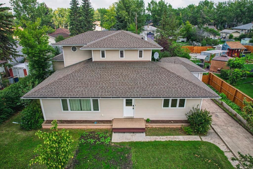 Beautifully updated and well maintained 1½ storey detached home built in 1954, offering space, privacy, and modern comfort. With over $40,000 in upgrades in the past two years alone, including a new sewer line (2025) and high-efficiency boiler (2024), the heavy lifting has already been done. A major 1999 renovation added a stunning primary bedroom retreat upstairs with gas fireplace and ensuite, a second bedroom, an expanded kitchen, main-floor laundry and a basement addition with in-floor heating. The large, well-designed, professionally renovated kitchen with long countertops has maple hardwood flooring. It opens to a bright living space with updated bathroom and two more bedrooms on the main level. The living room has a gas fireplace. The basement features a rec room with a pool table (included), built in cabinets, newer carpet and upgraded bathroom. Add to that two more bedrooms( one with large potential walk in closet). This house has lots of storage space. Outdoors, the fully fenced backyard with mature trees is a summer oasis with lilac privacy hedges, a large deck with natural gas BBQ hookups and a gazebo. The 30x30 double garage with in-floor heating has alley access and is a handyman’s dream—drywalled, painted, and loaded with workspaces and storage. This property includes Driveway access to the single car garage from the front, and easy access to Three Hills School (K–12) just a block away. Walking distance to Main Street, grocery stores, and amenities. Quiet street, wonderful neighbors, and move-in ready. Just bring your belongings, move in and enjoy this amazing property.