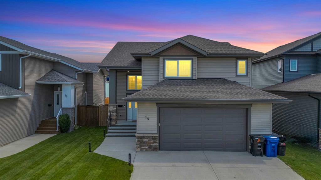 Gorgeous Modified Bi-Level in One of Blackfalds’ Most Desirable Neighborhoods! From the moment you arrive, you'll appreciate the peaceful surroundings and walking trails/green space directly across the street. Located just a short walk from Iron Ridge Intermediate Campus and St. Gregory the Great Catholic School, this home offers both convenience and serenity. Step inside to a spacious, tiled front entry complete with a built-in bench, hooks, and a full closet—perfect for busy families. The main floor boasts vaulted ceilings and an open-concept living, kitchen, and dining area filled with natural light. The kitchen is a standout, featuring rich dark cabinetry, granite countertops and sink, and stainless steel appliances. Enjoy countryside views from the large windows at the back—no rear neighbors! The dining area opens to a covered deck, perfect for morning coffee or evening BBQs. The fenced yard offers plenty of space plus convenient RV parking. The main level includes two generous bedrooms and a full four-piece bathroom. Upstairs, the private primary suite features ample space for a king-sized bed, a walk-in closet, and a three-piece ensuite. The basement is a blank canvas awaiting your personal touch and is roughed in to accommodate two more bedrooms, a family room, bathroom, and laundry room. Additional highlights include central air conditioning, roughed-in in-floor heat, a heated attached garage, and pristine condition throughout. This home checks all the boxes—don’t miss out on this fantastic opportunity!