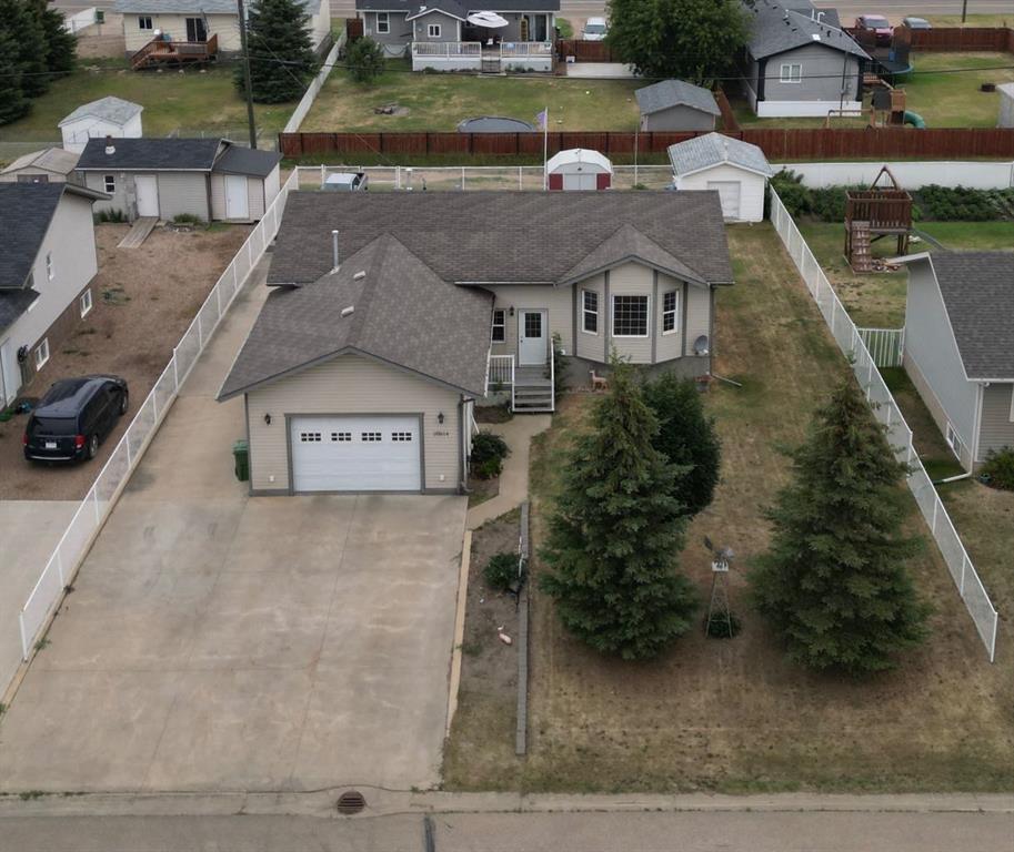 Immaculate one owner home ready for a new family! This meticulously maintained home offers incredible value, space, and comfort for the whole family. Featuring 5 bedrooms and 3 full bathrooms, this home is move-in ready and shows true pride of ownership throughout. Enjoy the convenience of an attached garage, a massive concrete driveway with extra parking pad, and gorgeous curb appeal with mature spruce trees and clean landscaping. The backyard is fenced with low-maintenance chain-link, a couple of handy storage sheds, and a nice deck to relax or entertain. Step inside to a spacious dropped entrance, then head up to a bright and open main floor featuring a large kitchen and dining area with patio doors to the back deck. The kitchen offers plenty of cabinetry, a corner pantry, and full appliance package. The front living room boasts big south-facing windows for loads of natural light. Also on the main floor are 3 bedrooms, 2 bathrooms including a private master suite with 3-piece ensuite, and the convenience of main floor laundry. Downstairs, the fully finished basement is warm and inviting with in-floor heat, 2 additional bedrooms, a full bath, large rec room, and extra storage space. Central air conditioning, beautiful landscaping, and a great location make this home the complete package. Don't miss this one—it's priced to sell and ready for a new family to enjoy!