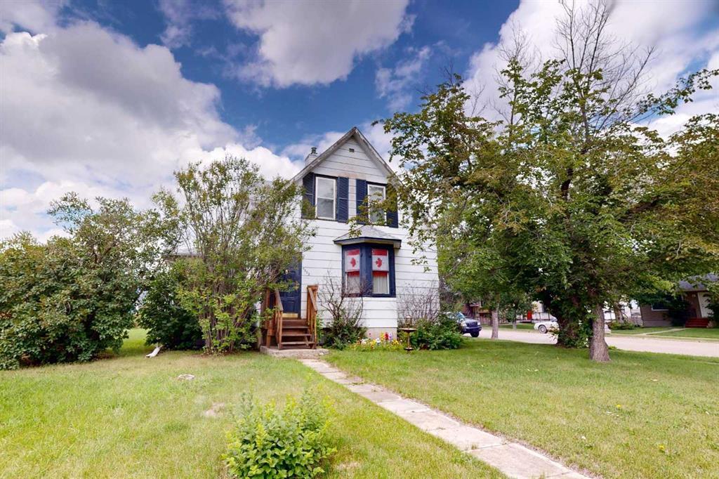 Welcome to this spacious 3-story home in Stettler! This home offers a solid foundation for your vision—whether you are a growing family ready to make it your own or an investor looking to rent this property out for immediate revenue. Classic features like tall ceilings, original woodwork, and large windows hint at the timeless character of this home. The home features a functional layout with separate living, dining, and kitchen areas, making it easy to imagine modern upgrades without changing the flow. The living room is spacious and classic, with detailed wood accents surrounding the fireplace, a bay window, and enough space for a sectional. The dining room is open to the kitchen so serving meals is a breeze. There is a bedroom with a 4 pc ensuite bathroom. The back entrance has space for extra fridge/freezer and all your outdoor gear. Upstairs, there are two bedrooms and a 3 pc bathroom with storage space. Downstairs, there is a family room, a bathroom, and a large laundry/mechanical room. This home is located in a quiet, established neighborhood with mature trees. The backyard has a single car garage, a deck off the side door, and trees for privacy and shade. This home provides a harmonious mix of traditional charm and the comforts of everyday living, suitable for a variety of lifestyle needs. Are you ready to unlock the potential of this 3-story gem