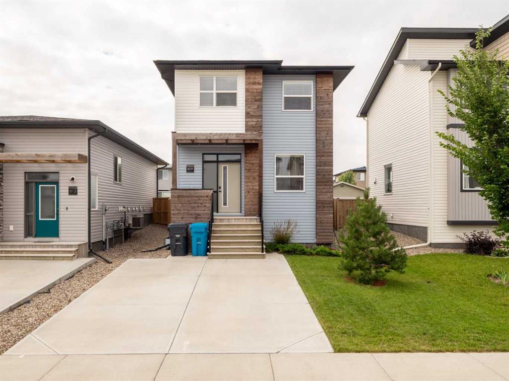 This 1317 sq. ft. two-storey home features a modern design, front verandah, and is just a short walk to a 73-acre park. Enjoy a stylish kitchen with quartz counters, pantry, and peninsula, plus a spacious rear living room. Upstairs, the primary suite includes a walk-in closet and three-piece ensuite. Thoughtful layout with front/back coat closets and mudroom. Completing this lovely home is a fully developed basment, detached garage, underground spinklers, central air and stone patio.