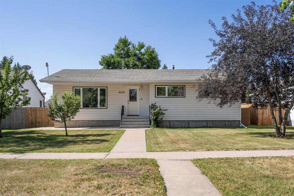 Ideal location and so much space for a growing family, with air conditioning to beat the heat this summer! Located on a quiet street in Viking, don't let this 1199 sq ft bungalow fool you! With three bedrooms upstairs, and the option for an illegal basement suite, there's room for everyone! Upon entering the home, the spacious living room with laminate flooring leads nicely to the kitchen and eating area. Fresh white cabinets and neutral tones are sure to please in the kitchen... with newer stainless steel appliances, a garburator and beautiful wood countertops. A floor to ceiling bank of pantries add extra storage for those bigger, bulkier items. Down the hall are two bedrooms, a 4-piece bathroom plus the well-sized primary bedroom. Downstairs, the opportunities await with a kitchenette (Fridge, Stove, Sink) and HUGE family room. There are doors separating the basement level from the main level, with the back porch area being shared; and the basement uses in-floor heat while the main floor uses forced air heat. Another good-sized bedroom, 3-piece bathroom and office space complete the basement. Outside, you find yourself walking into a lovely yard that's fully fenced and offers garden spaces (including raspberry, saskatoon and blueberry bushes along with countless perennials and apple trees out front), raised garden beds, plus a large 26x32 heated double garage. There's ample parking, including enough room for an RV at the alley.