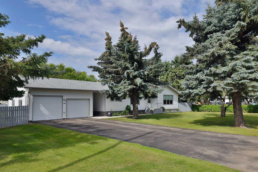So many titles we could use ... "Neat as a Pin", "Tons of Space, Inside & Out", "Sellers Pride Shows Through" ... but more importantly, you just have to see this one! You can see from the street this home has been so well cared for! Let's start by driving in on your paved driveway, pulling up to your 22' wide x 26' deep heated garage, with 1 door even being 8' high. Enjoy the covered breezeway between the garage and the almost 1400 sq ft home. Lots of open living space between the spacious kitchen area, sunroom (with garden doors) AND the living room too. There's a handy 2 pc. washroom with the washer & dryer there, at the back entry. The rest of the main level offers an office (or 2nd bedroom if modified), the primary bedroom and the main washroom ... which also doubles as the ensuite. Down the stairs you'll find a BIG family room with cozy wood-burning fireplace, 2 person hot tub to soak in at the end of the day, 2 good-sized bedrooms, a recently renovated 3 pc. washroom and tons of storage space. The back yard is AMAZING! Come and see the 2 tiered fiberglass & aluminum decks ... meaning no maintenance (with 2 gas hook-up for BBQ), gazebo, gorgeous tree in the centre for shade, 2 sheds, 1 tarp garage, and the fenced backyard. Oh, we should tell you the gate on the East side of the garage opens so you could park a trailer in the back yard AND the main level of the home has air conditioning! By the way, there's a small playground next door, a Trout Pond at the end of the Street AND you're just minutes to Buffalo Lake! You'll want to see it all, including all the improvements!