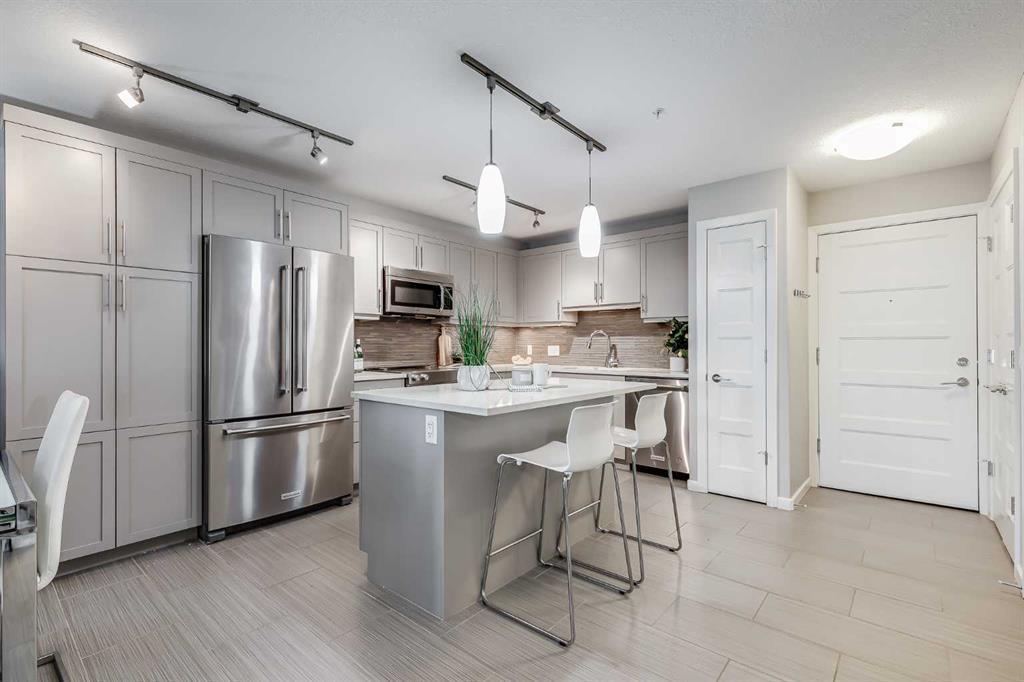 Located in the desirable Chateau building, this beautiful condo offers a spacious and modern living experience. Featuring quartz countertops, a large kitchen, and stylish tile and carpet flooring throughout, the open layout is perfect for entertaining and everyday comfort. A huge walk-through closet and in-suite laundry add to the convenience, while custom blinds bring a touch of elegance to every room. Step outside to your private outdoor patio area, ideal for enjoying a relaxing happy hour, morning coffee, or simply taking in the fresh air. The condo includes titled underground parking with storage, plus a separate storage unit for all your extra belongings. As a 40-plus condo building, it offers a peaceful, adult-oriented environment. You’ll also enjoy access to the well-equipped amenities room, perfect for hosting parties or gatherings. The beautifully designed front foyer, complete with comfortable furniture, is a great space for relaxing or visiting with neighbors. Located within walking distance to grocery stores, drugstores, medical offices, pubs, and restaurants, this home offers unbeatable convenience in a well-built and welcoming community.