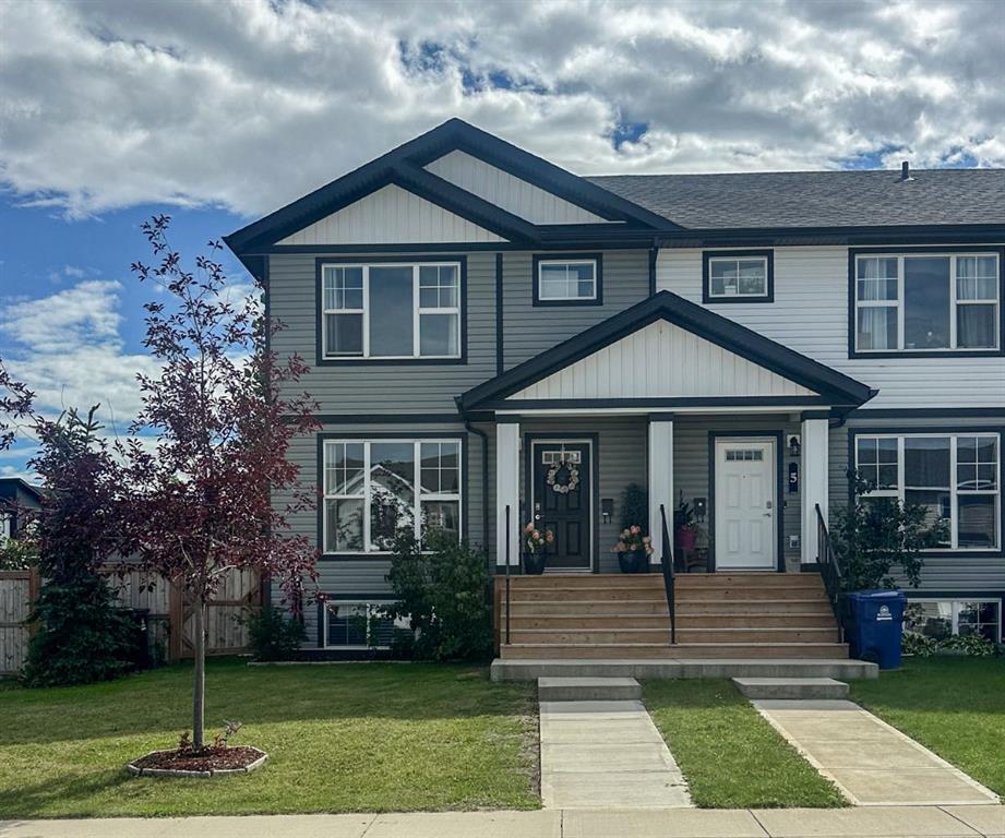 Welcome to this bright and stylish 3 bedroom, 2.5 bath end-unit townhouse, perfectly situated in one of Blackfalds’ most family-friendly communities. With its prime location close to the Abbey Centre, walk-in clinic, shopping, and everyday conveniences, this home blends modern living with unbeatable accessibility. Step inside to discover a light-filled, open-concept layout with plenty of natural light streaming through large windows. The modern finishes throughout create a fresh and inviting atmosphere, while central air-conditioning ensures year-round comfort. Upstairs, you’ll find three spacious bedrooms, including a comfortable primary retreat, plus a full bathroom. The unfinished basement offers a blank canvas to design your dream space, whether that’s a family room, home office, or gym. As an end unit, this townhouse provides extra privacy, additional windows, and a bit more outdoor space to enjoy. The landscaped yard features various shrubs and mature trees, including apple trees, perfect for those who appreciate greenery and a touch of nature at home. Whether you’re starting out, downsizing, or looking for an investment, this property checks all the boxes for modern, low-maintenance living in a welcoming neighborhood.