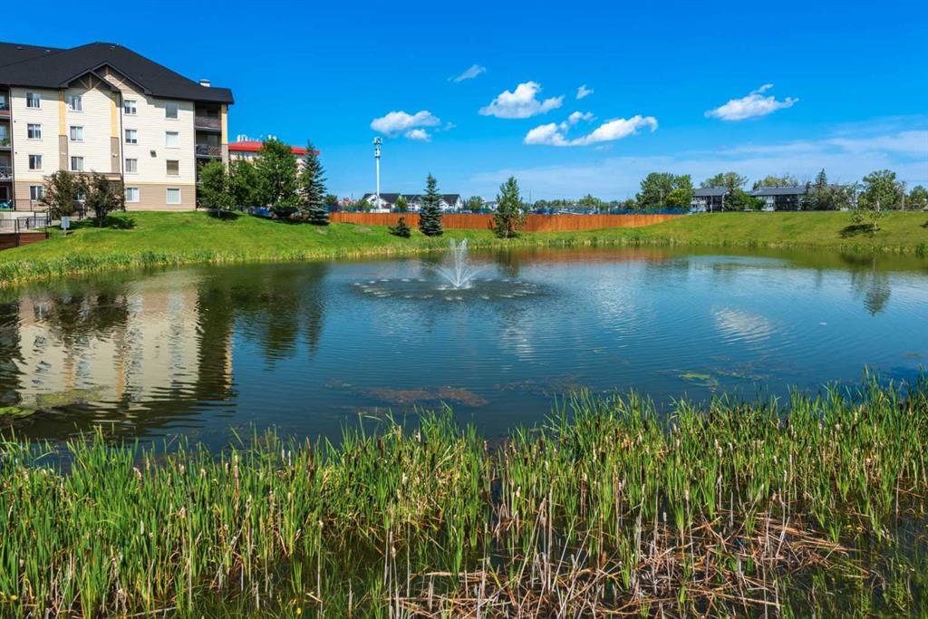 Gorgeous two bedroom, second floor suite offering a lovely floor plan, overlooking the pond at Mackenzie Pointe. The suite has been freshly painted throughout and showcases brand new luxury vinyl plank flooring. The open layout offers a good-sized modern kitchen open to the living and dining rooms. Covered balcony with sliding patio door offers a gas BBQ for your convenience. You’ll love the upgraded stainless steel kitchen appliances including a brand new stove, ample counter and cabinet space. Washer & dryer has been upgraded. 2 bedrooms, 4 piece main bath, laundry room complete the suite. The parking stall is close by, just to the left of the front doors. All utilities (including unit electricity – so nice!) are included in the condo fees, making budgeting easy and stress-free. Situated in central Airdrie, conveniently located close to schools, shopping, restaurants, and public transit, with quick access to Cross Iron Mills Mall, Calgary International Airport. Ideal for first-time buyers, downsizers, or investors seeking a low-maintenance property in a central location. Available for immediate occupancy. Don't miss this rare opportunity to own a great unit in a prime location with unbeatable value — schedule your private showing today.
