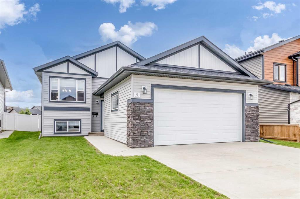 Welcome to 5 Aztec Street, a beautifully maintained 1,126 sq. ft. bi-level home featuring 2 spacious bedrooms and 2 full bathrooms. The open-concept floor plan offers seamless flow between the kitchen, living, and dining areas, enhanced by stylish laminate flooring. The oversize primary bedroom includes a 4-piece ensuite and a walk-in closet, while a second large bedroom and another 4-piece bathroom complete the main level. The kitchen comes fully equipped with an island and stainless steel appliances, including a stove, fridge, dishwasher, and built-in microwave. Additional features include roughed-in central vacuum and roughed-in under-slab heating in the basement, offering great potential for future development. Situated on a generously sized, fenced lot with an additional 9' gate with alley access, this home also boasts a double attached front heated garage and a rear deck - perfect for outdoor living. Don't miss this one!