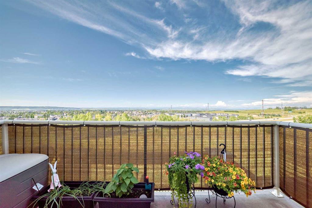 Welcome to your dream home with million-dollar VIEWS! This immaculate 2-bedroom townhouse in Blue Sky at Rocky Ridge offers breathtaking mountain vistas that will leave you in awe. Enjoy your morning coffee or unwind in the evening with a sunset from your private balcony—soaking in the serene, countryside feel while still enjoying all the conveniences of city living. Inside, you'll find abundant natural light, soaring 9-ft ceilings, and floor-to-ceiling windows that perfectly frame those stunning views. The open-concept layout creates a seamless flow between the kitchen, dining, 1/2 bath, and living areas. The kitchen features maple cabinets, a pantry, stainless steel appliances, and a breakfast bar, while the living room opens to a spacious deck overlooking both the city and mountains. The primary bedroom is a relaxing retreat with a 4-piece ensuite. A second generously sized bedroom, another full 4-piece bath, and convenient upper-level laundry complete the upstairs. This home also includes a titled underground parking stall with a storage locker, private gym access, nearby nature paths for biking, and pet-friendly green spaces. Location is unbeatable—a short walk to the LRT, and minutes to the Rocky Ridge YMCA Recreation Centre, schools, shopping, and many other amenities. Beautifully maintained with numerous updates, this home truly stands out. Condo fees include annual community fees providing access to recreation facilities. don’t miss this rare opportunity!