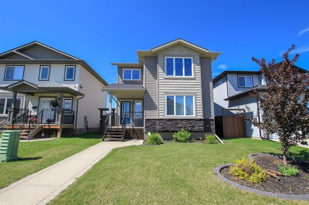 3 BDRM, 3 BATH CUSTOM BUILT 2-STOREY IN ASPEN LAKES ~ ORIGINAL OWNER ~ FULLY FENCED WEST FACING BACKYARD ~ Covered front entry welcomes you and leads to the 2-storey foyer ~ Open concept main floor layout with large windows offers a feeling of spaciousness ~ The kitchen offers plenty of dark stained maple cabinets with soft close drawers, crown mouldings plus pots and pan drawers, full tile backsplash, ample granite counter space including a large island with eating bar and undermount sink, corner pantry and opens to the dining space with garden door access to the deck (with gas line for BBQ) ~ 2PC main floor bath ~ Media room just off the main living area is wired for sound and has black out blinds ~ The spacious primary bedroom can easily accommodate a king size bed and multiple pieces of furniture, has ample closet space and a 4PC ensuite ~ 2 additional bedrooms located on the same level as the primary share a 4PC bath with oversized vanity ~ The basement has in floor heat roughed in, bathroom plumbing roughed in and could easily accommodate a family room and additional bedrooms ~ The backyard is landscaped with well established trees and shrubs, 25' x 12' lower concrete patio, 10' x 20' shed and is fully fenced with access to the large parking pad and back alley ~ Other great features include; central air conditioning, non smoking home, central vacuum, concrete edging in the front and backyards ~ Excellent location, steps to Trans Canada walking trail, Aspen Lakes, parks and playgrounds, with easy access to the Abbey Centre, schools, shopping and the highway.